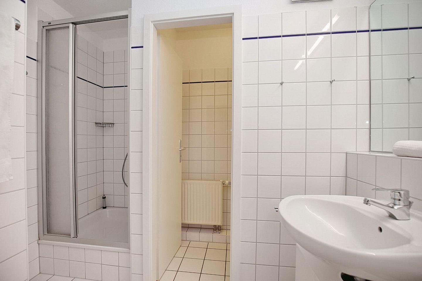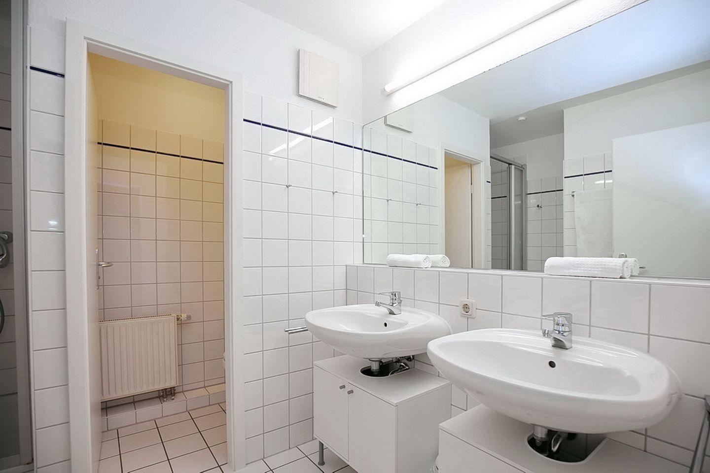 Das Bad ist mit zwei Waschbecken, einer Duschkabine und einem separaten WC ausgestattet. Fahrräder können am Fahrradständer am Haus oder im Abstellraum im Keller abgestellt werden. In dieser Nichtraucherwohnung sind Haustiere nicht erlaubt.