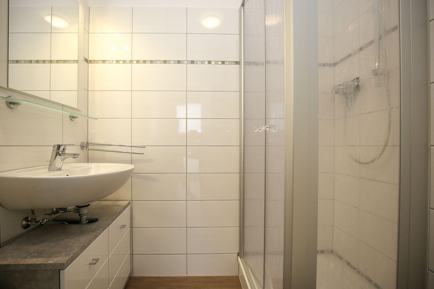 Das geflieste Bad bietet dir eine Dusche und ein WC. Du bewohnst eine Nichtraucherwohnung. Für Urlauber, die ihren Hund mit in den Urlaub nehmen möchten, merken wir hier an, dass kleine und mittelgroße Hunde mitreisen dürfen.
