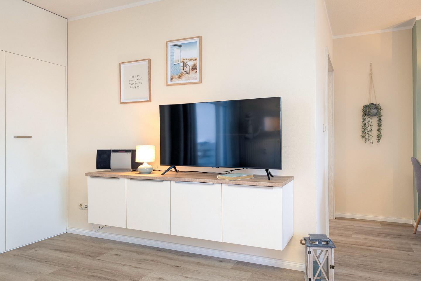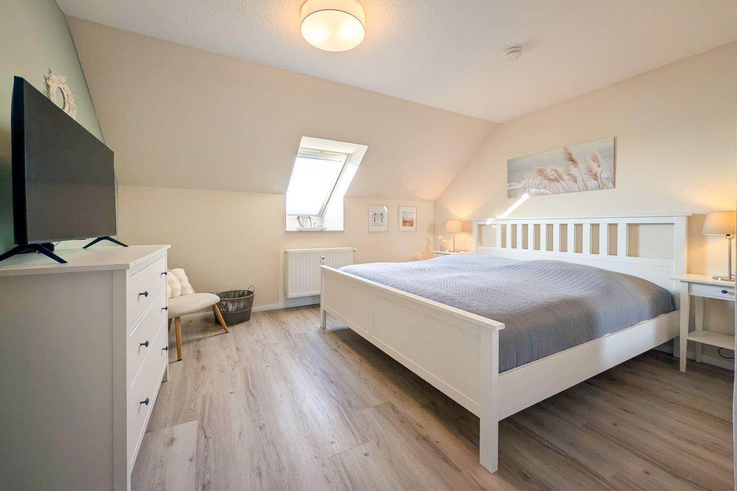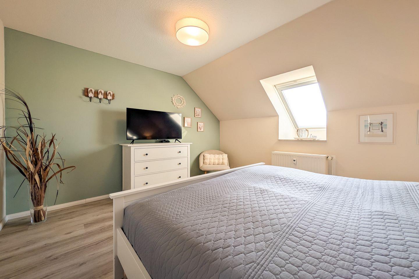 Optimalen Schlafkomfort bietet das große Doppelbett (2 x 90 x 200 cm) im Schlafzimmer. Viel Platz für deine Urlaubsgarderobe bietet der Kleiderschrank. Auch ein zweiter Flachbildfernseher befindet sich hier. Die gesamte Wohnung ist mit hochwertigem Designbodenbelag ausgelegt.