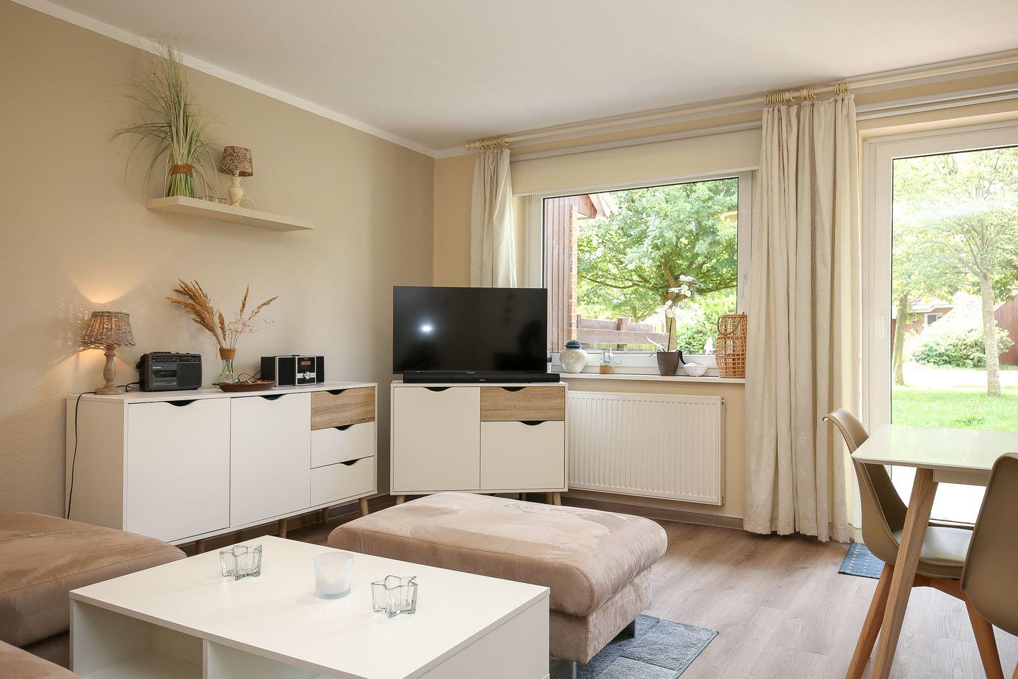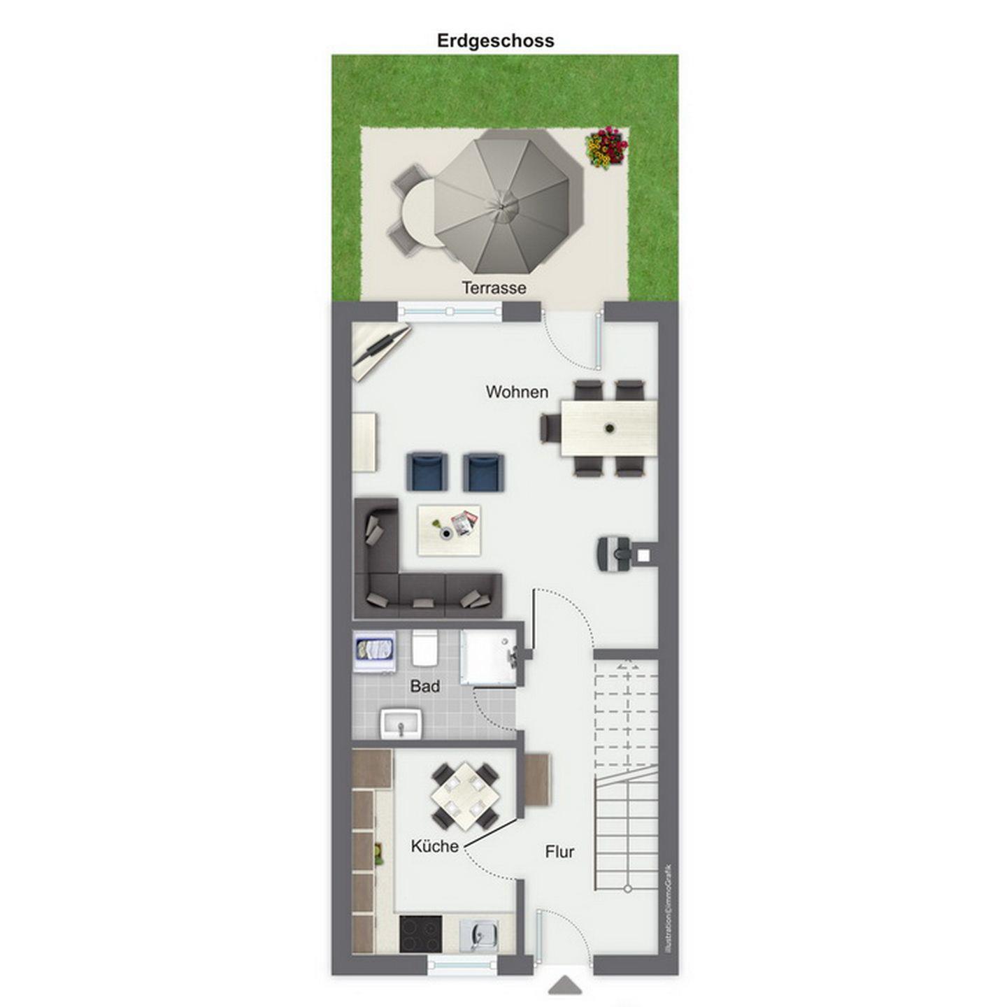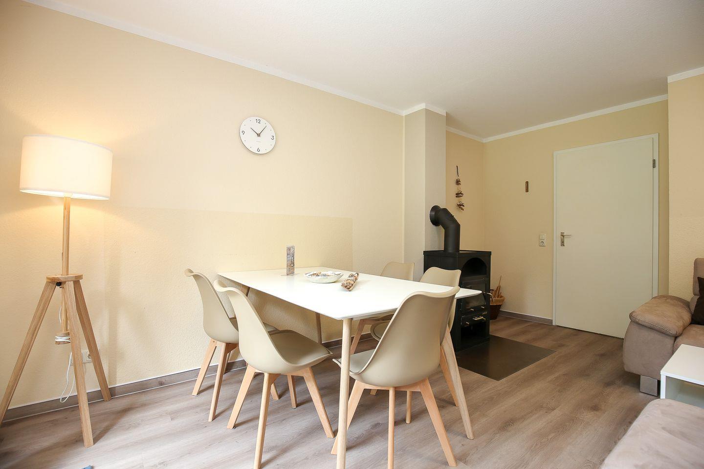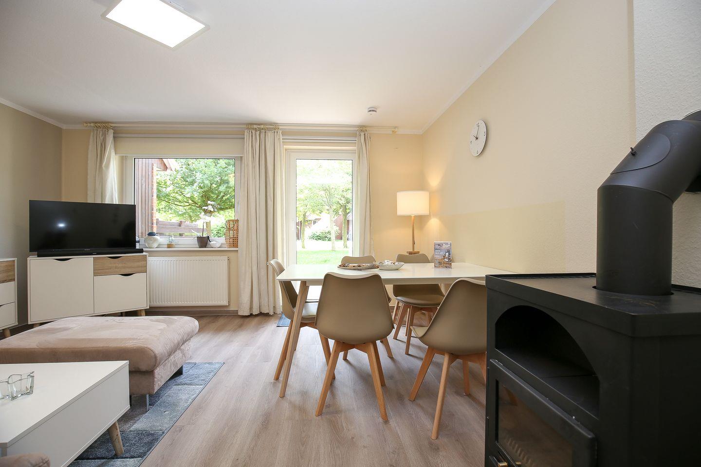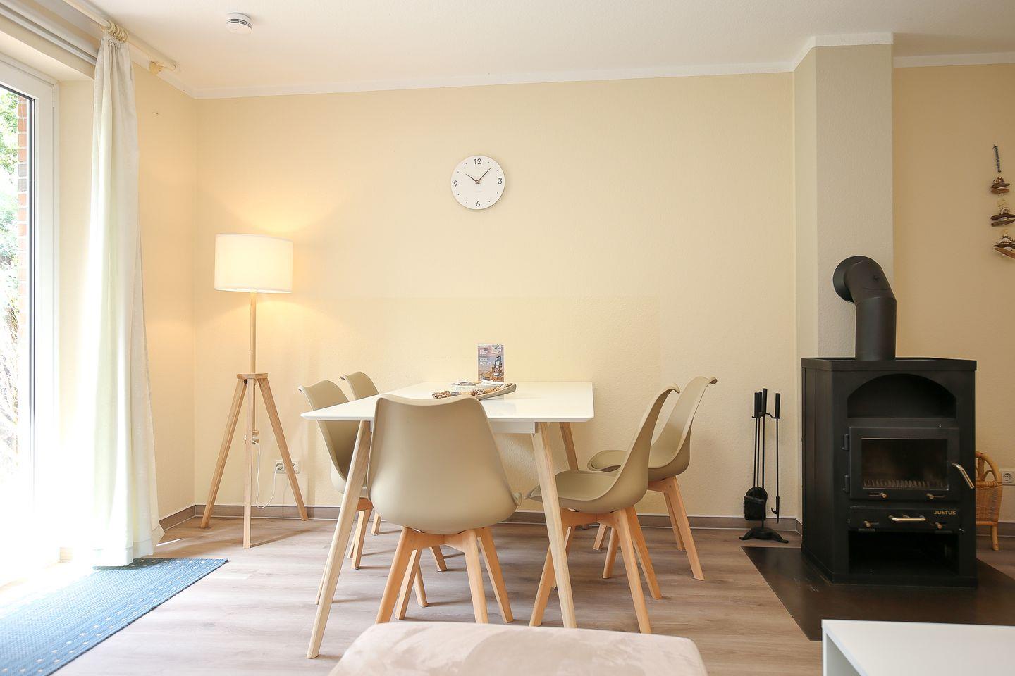 Im Erdgeschoss des Reihenmittelhauses befinden sich eine separate Küche, ein Duschbad sowie ein kombiniertes Wohn-/ Esszimmer mit gemütlicher Couch, Kamin und zusätzlicher Essecke. Zur Unterhaltung stehen hier ein Flatscreen-TV, ein DVD-Player, eine Musikanlage, zahlreiche Bücher und Spiele zur Verfügung. Der in den Wohnbereich integrierte Kamin vermittelt ein behagliches Raumgefühl . Vom Wohnzimmer aus hast du einen direkten Zugang zur Terrasse, die viel Platz zum Spielen und Entspannen bietet.
