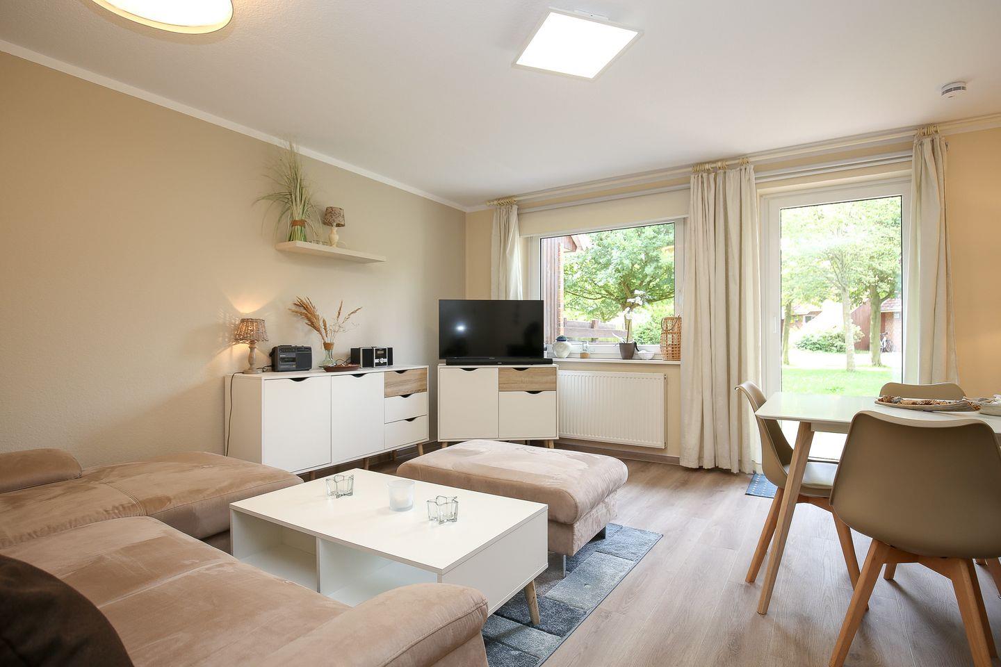 Das Ferienhaus 61b im Urlauberdorf bietet Platz für bis zu 4 Personen. Die Terrasse ist süd-östlich ausgerichtet. Eine Waschmaschine, ein Kamin sowie WLAN (ohne Gewähr)sind vorhanden. Ein Kinderhochstuhl ist inklusive.