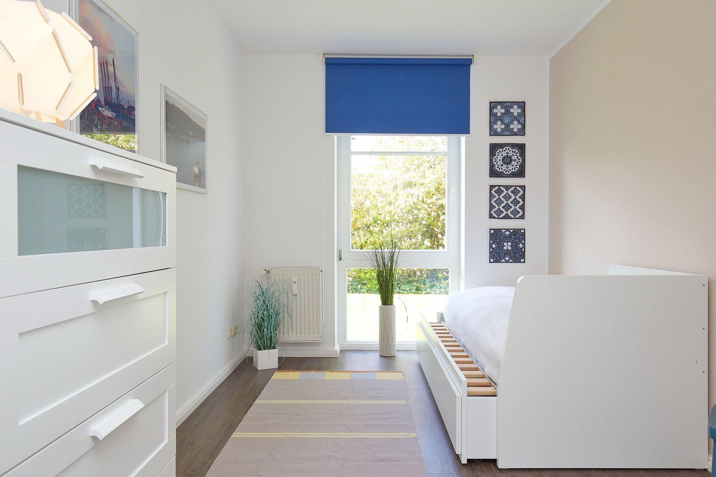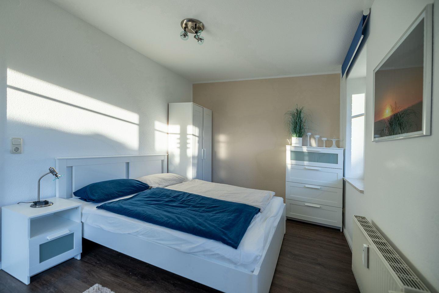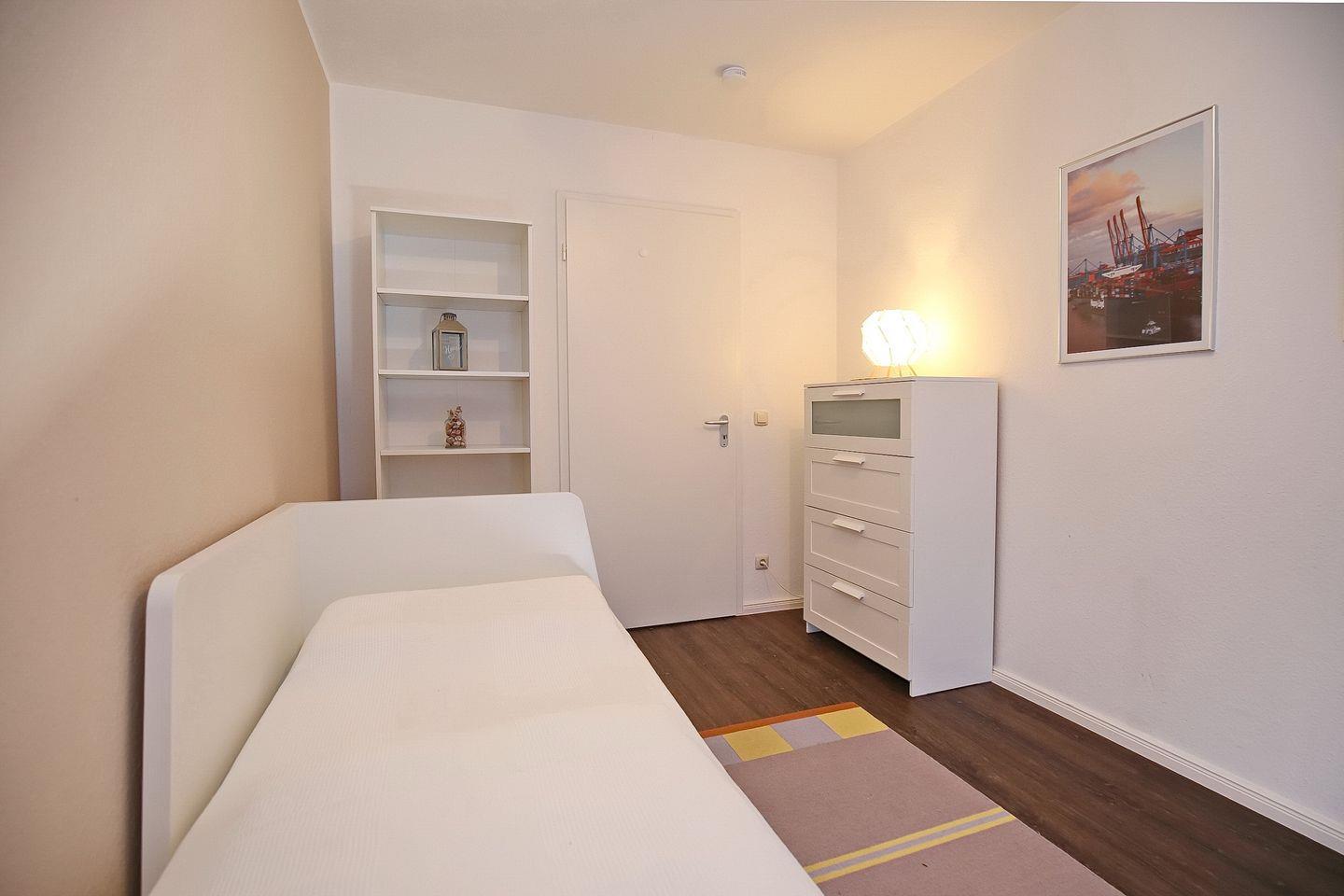 Im ersten Schlafzimmer erwarten dich ein Doppelbett (2 x 90 x 200 cm) und ein großer Kleiderschrank. Der zweite Schlafraum ist mit einem Einzelbett (80 x 200 cm) eingerichtet. Für einen ruhigen Schlaf sorgen Rollos an den Fenstern. Eine weitere Schlafmöglichkeit befindet sich im Wohnzimmer auf der Couch.