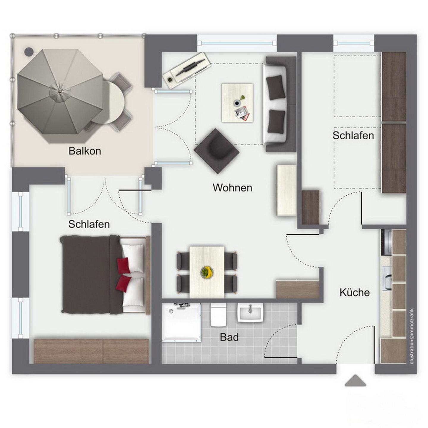 Als Bodenbelag wurde im Wohnzimmer Laminat und in den Schlafzimmern Teppich gewählt. Das Duschbad und der Küchenbereich sind gefliest. In dieser Nichtraucherwohnung sind Haustiere nicht erlaubt. Ein Tiefgaragen-Stellplatz (Einfahrtshöhe 2,10 m) sorgt für die sichere Unterbringung deines Autos.