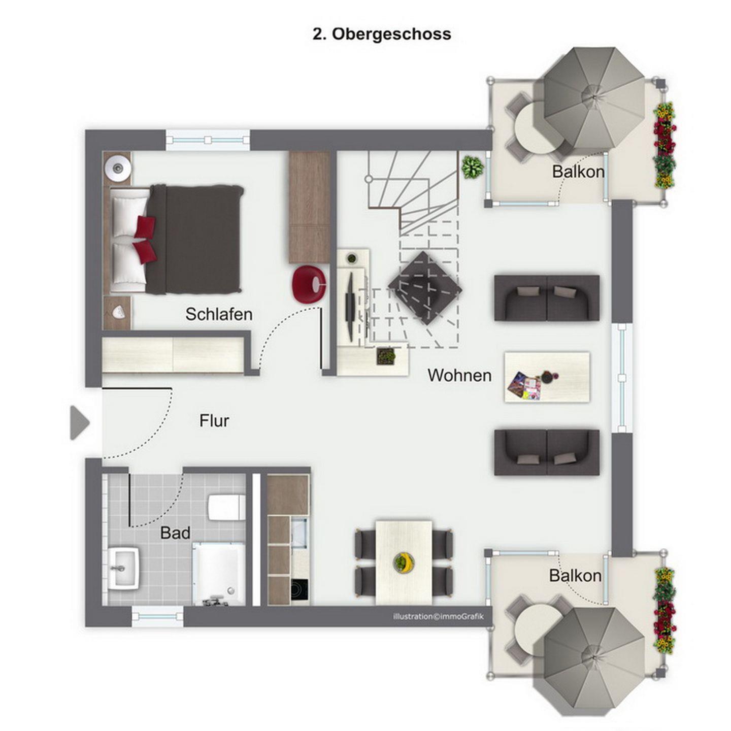 Deine 3-Zimmer-Ferienwohnung in der Ferienresidenz Düne III befindet sich im 2. OG des Hauses und verläuft über zwei Ebenen. Auf ca. 54 m² verfügt sie über das Wohnzimmer mit integrierter Küchenzeile, zwei Schlafzimmer, das Duschbad und zwei Balkone. Zum Strand sind es nur ca. 100 m.