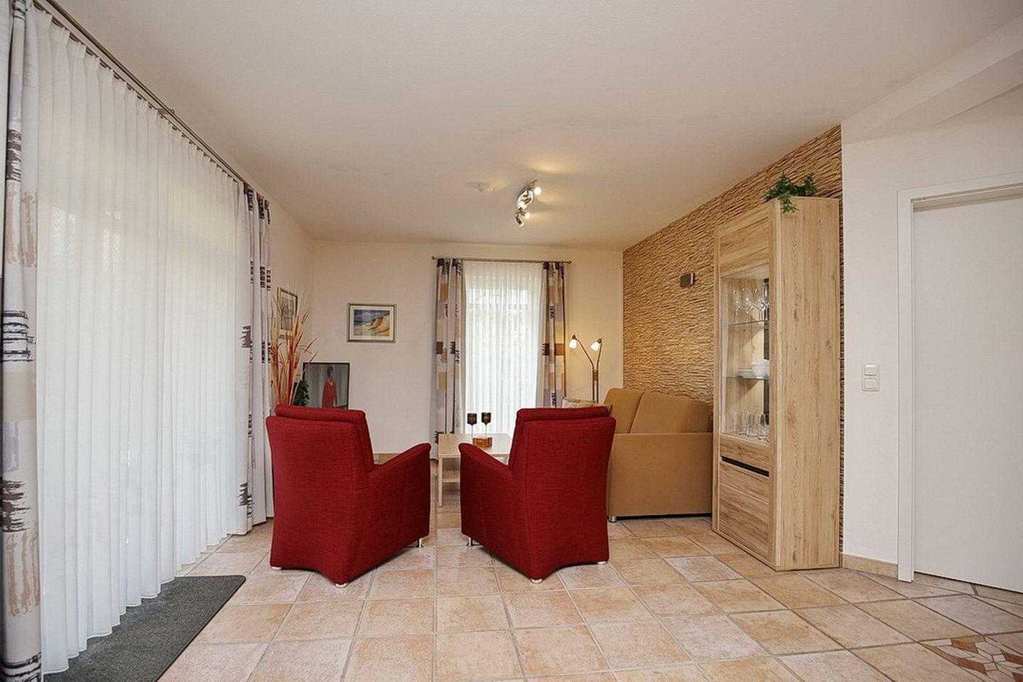 Die Ferienwohnung 13 in der Anlage Haus am Teich ist eine schöne 2-Zimmer-Wohnung für bis zu 4 Personen. Die Ferienwohnung liegt im Erdgeschoss und hat eine Terrasse in West Lage.