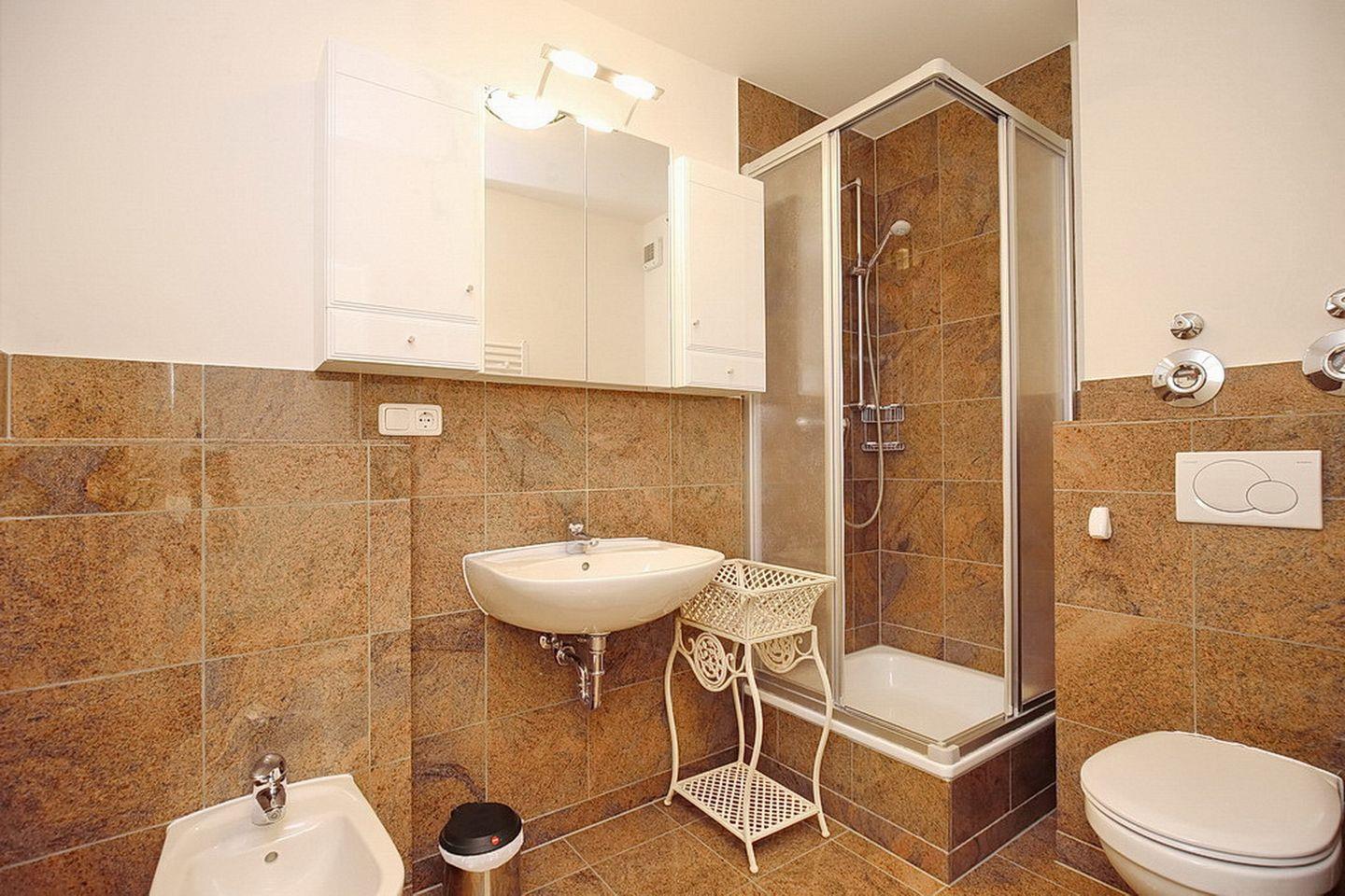 Im Badezimmer findest du Dusche/WC, Bidet, Fön und genug Ablagefläche vor. In dieser Nichtraucherwohnung sind keine Haustiere erlaubt.