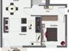 Die Küchenzeile liegt im Wohnbereich und ist mit einem Kühlschrank mit Gefrierfach, Geschirrspüler, Herd mit Backofen, 4-Plattenkochfeld und Mikrowelle gut ausgestattet. Der Esstisch im Küchenbereich bietet den idealen Platz für gemeinsame Mahlzeiten. Der Bodenbelag im Küchenbereich ist Parkett.
