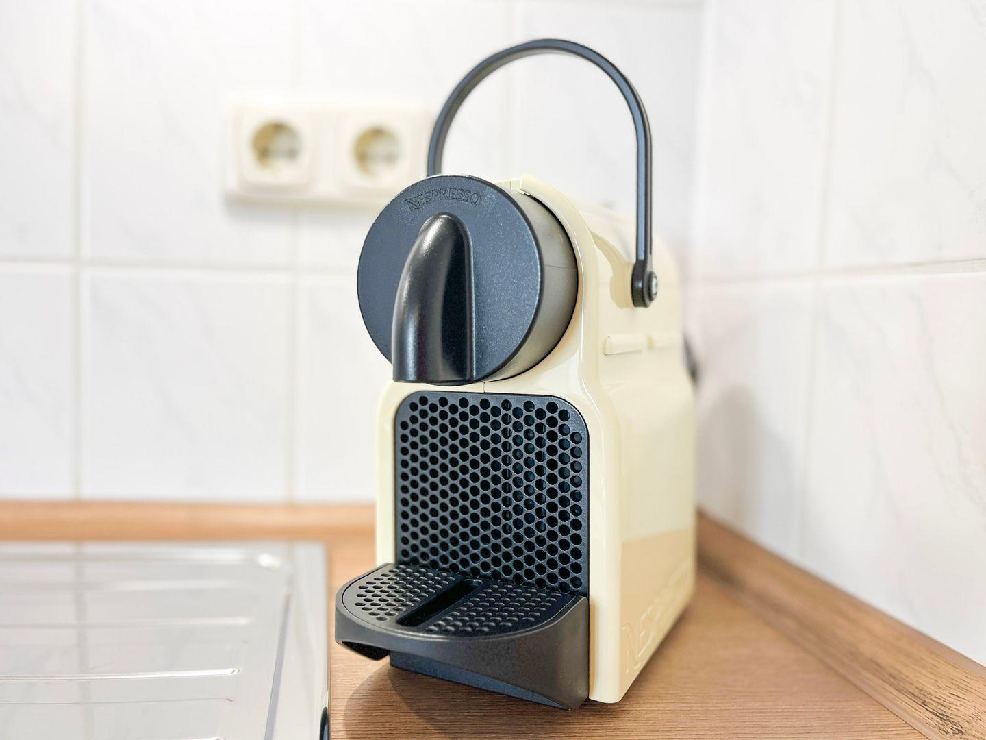Die Küchenzeile befindet sich im Wohnzimmer und ist mit Kühlschrank und Gefrierfach, Geschirrspüler, Herd mit Backofen, einem 4-Platten-Induktionskochfeld, Mikrowelle und Nespresso-Kaffeemaschine gut ausgestattet.