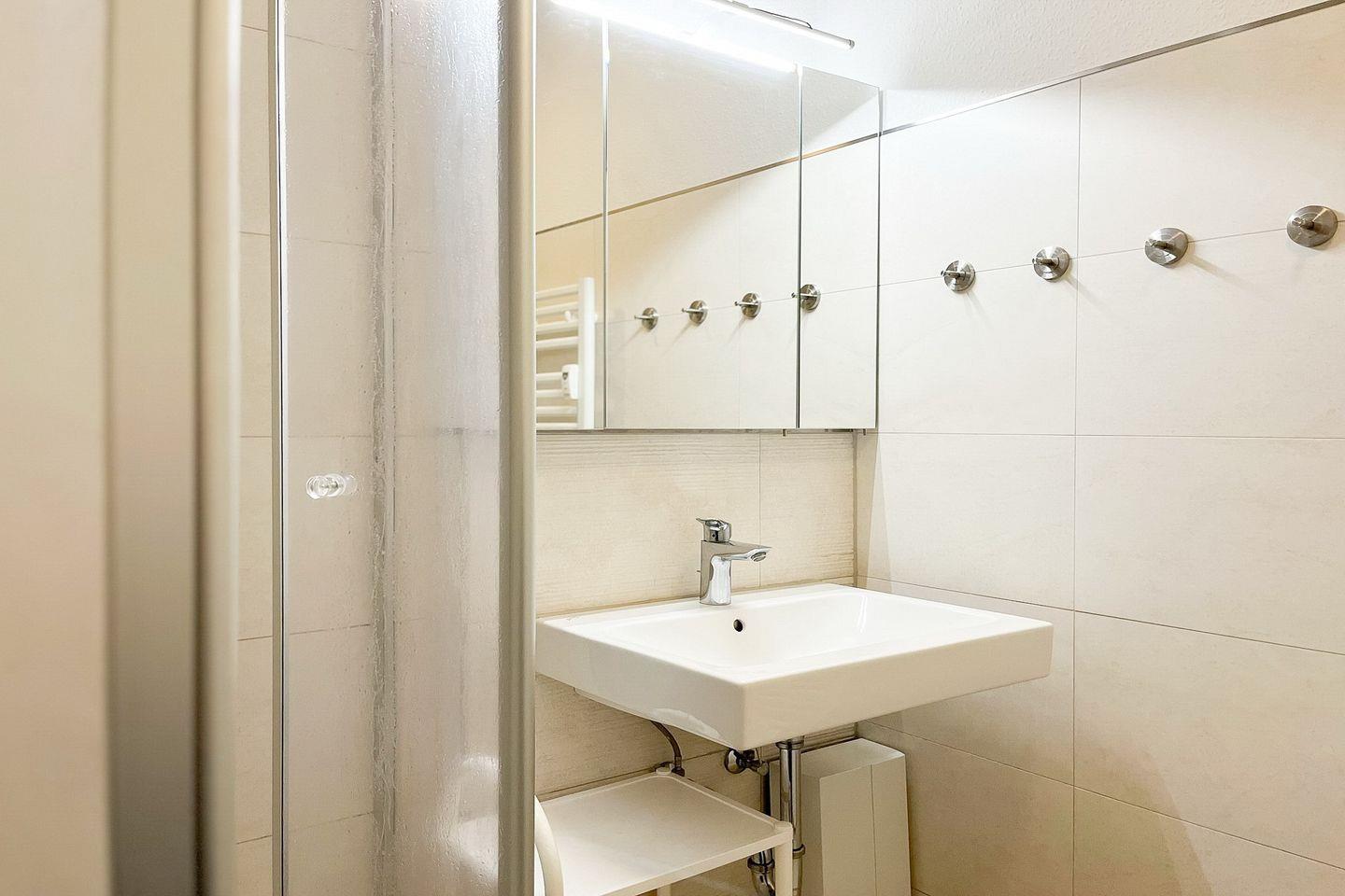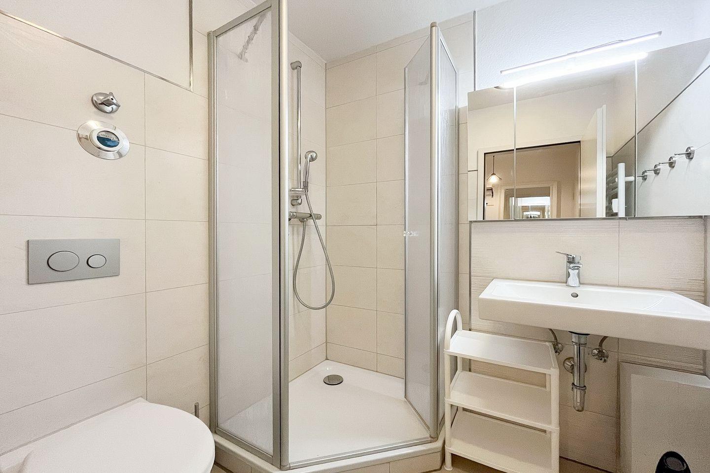 Selbstverständlich findest du in dieser Wohnung ein gefliestes Duschbad mit Dusche und Ablagemöglichkeiten vor. Die Wohnung ist eine Nichtraucherwohnung. Haustiere sind hier nicht gestattet.