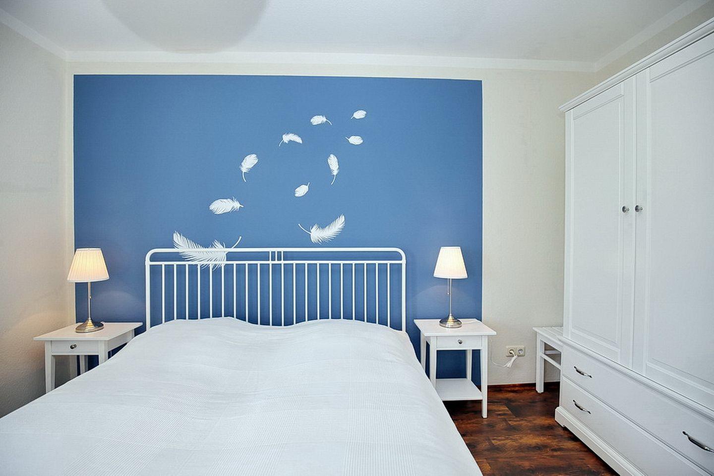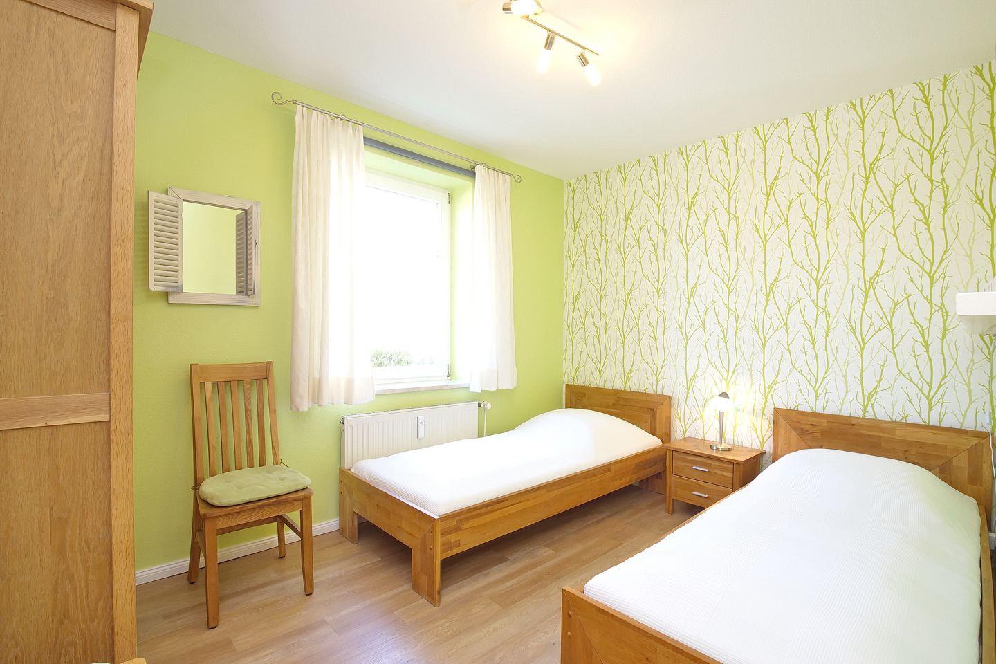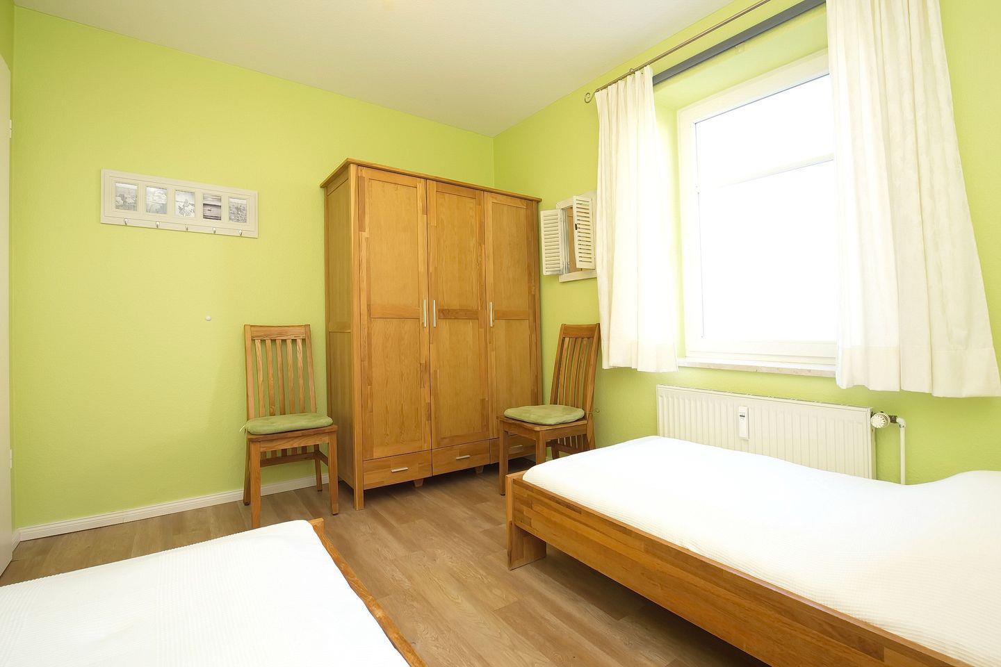 Zwei Schlafzimmer sorgen für genügend Rückzugsmöglichkeiten. An den Fenstern finden Sie Verdunklungsgardinen bzw. ein Verdunklungsrollo. Ein Schlafzimmer bietet ein großes Doppelbett (180 x 200 cm) einen Kleiderschrank, sowie 2 Stühle. Im zweiten Schlafzimmer finden Sie 2 stabile Einzelbetten (90 x 200 cm) einen großen Kleiderschrank und ebenfalls 2 Stühle vor. Eine LED-Bandbeleuchtung am Regal über den Betten macht dieses Zimmer für Leseratten sehr interessant.