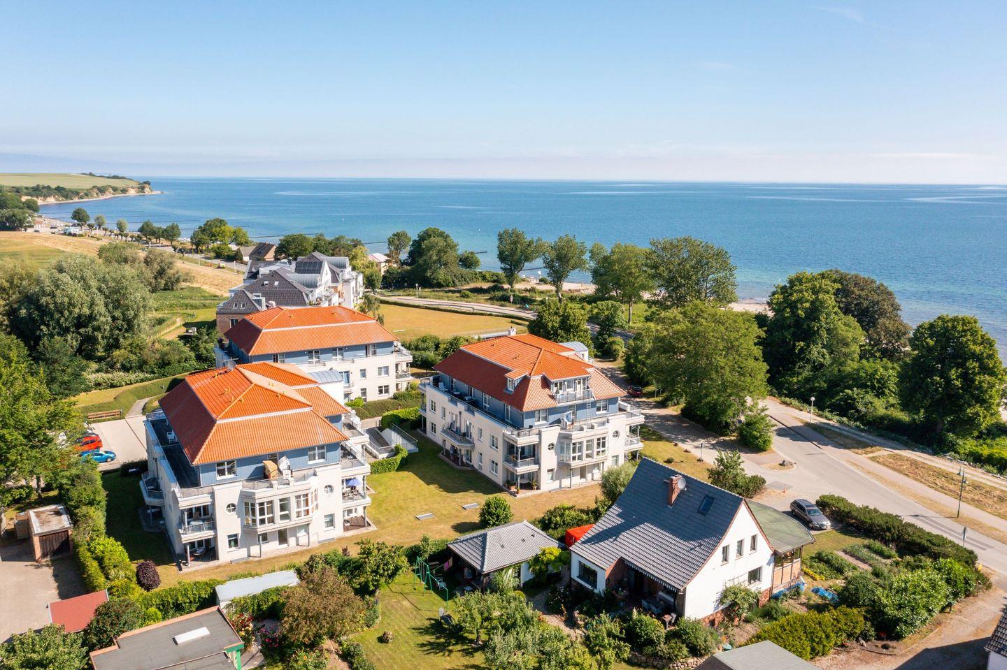 Erholen Sie sich in der gepflegten und liebevoll eingerichteten Ferienwohnung „Leichte Brise“. Die 55 qm große Wohnung ist zur Ostsee ausgerichtet und liegt im Erdgeschoss des Hauses 2. Sie ist aufgeteilt in Wohn-Essbereich mit Zugang zur Terrasse, zwei Schlafzimmer und Duschbad. Die Entfernung zum Strand beträgt ca. 50 m.