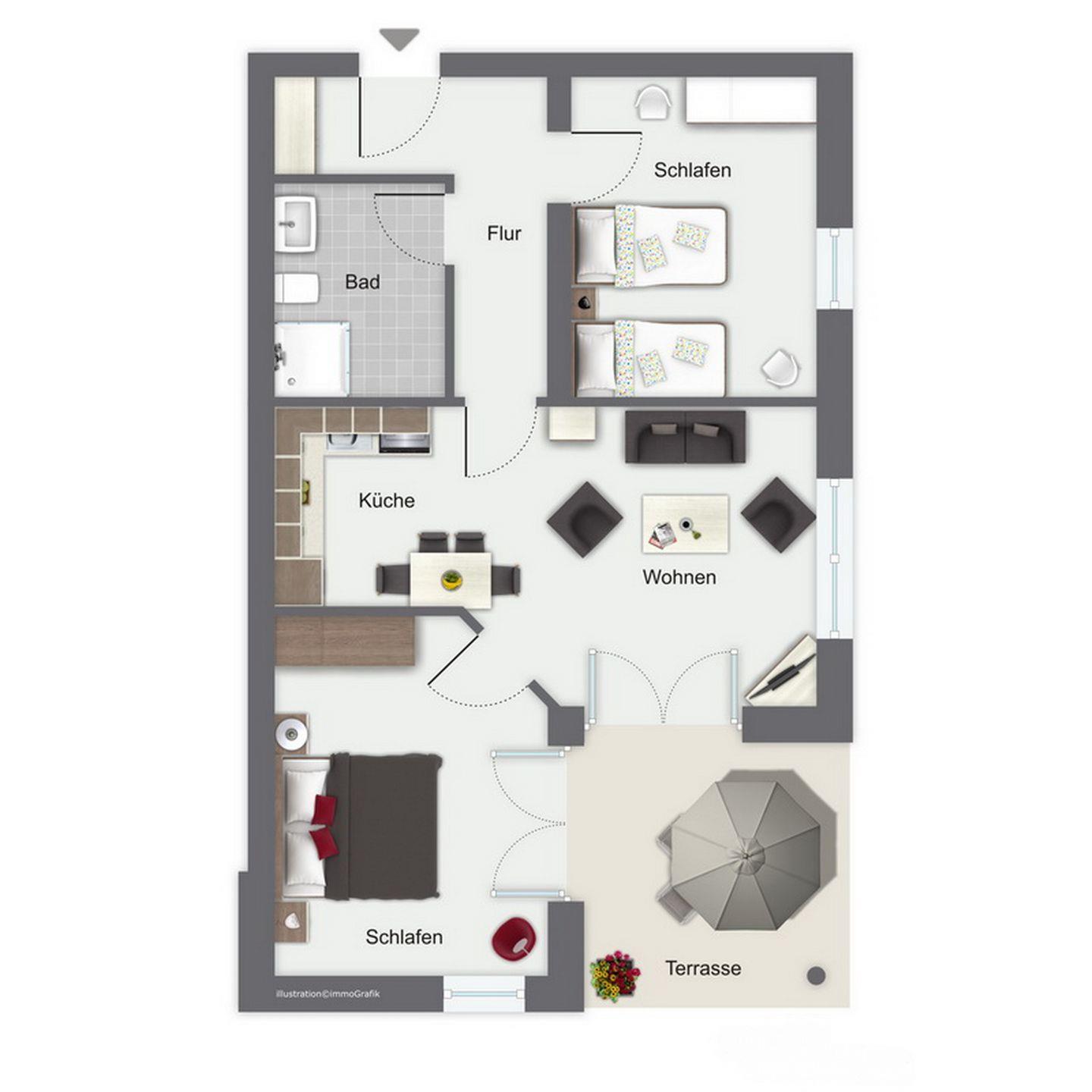 Die Ferienwohnung Nr. 21 in der Ferienanlage Dünenblick ist eine 3-Zimmer-Wohnung für bis zu 4 Personen.