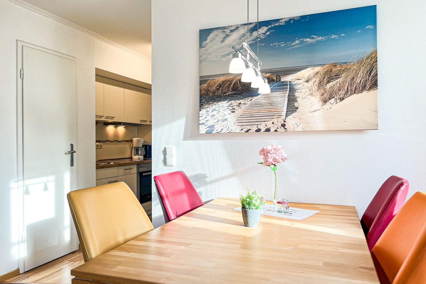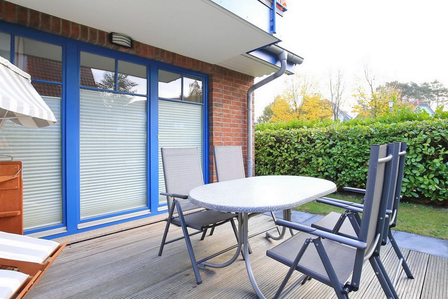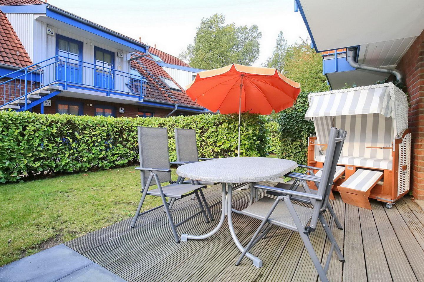 Die Ferienwohnung 03-1 in der Anlage Papillon ist eine schöne 2-Zimmer-Wohnung für bis zu 4 Personen. Die Ferienwohnung liegt im Erdgeschoss und hat eine Terrasse in Süd-West Lage. WLAN (ohne Gewähr) und Geschirrspüler sind inklusive.