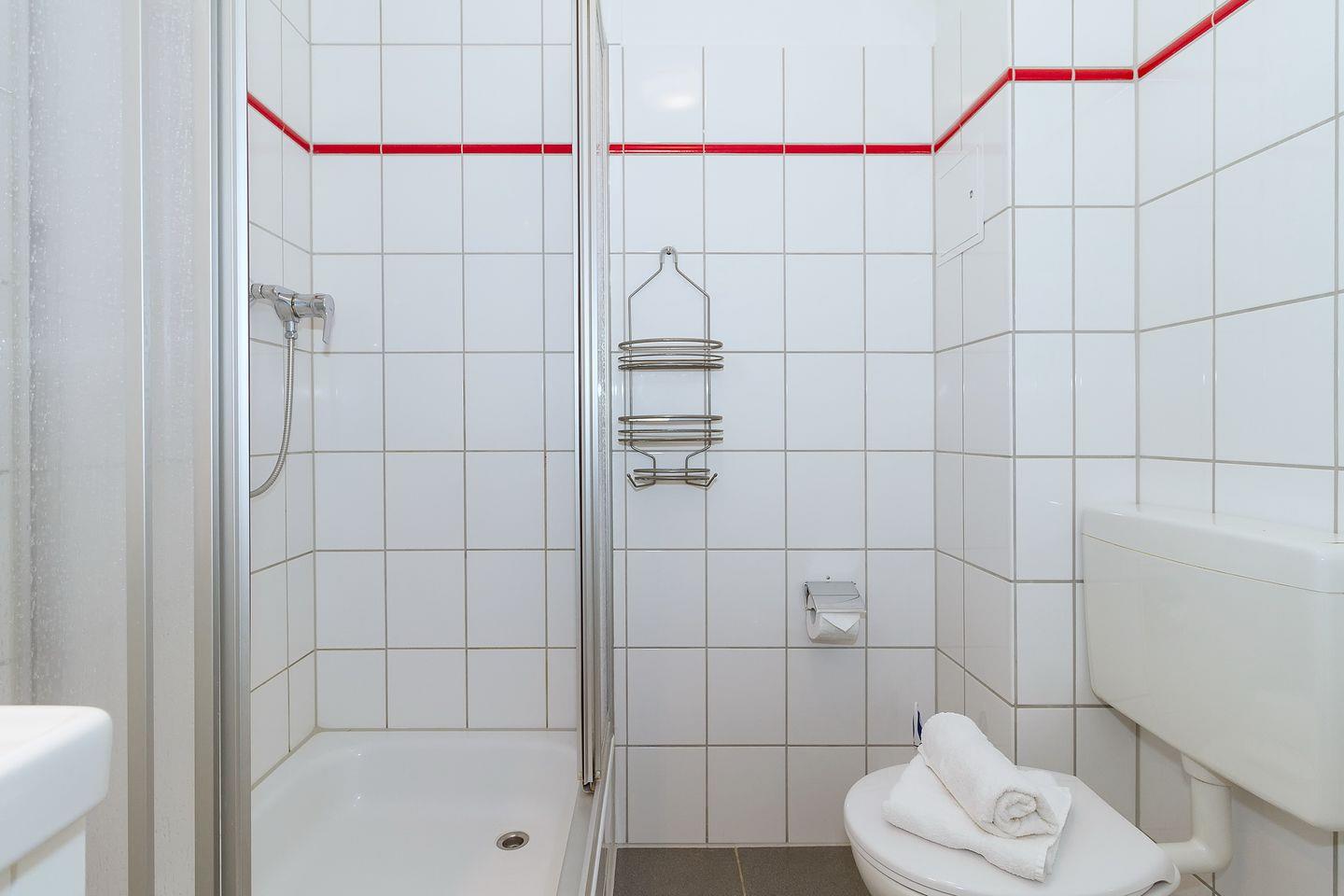 Die Ferienwohnung verfügt über ein Schlafzimmer mit Doppelbett (1,60 × 2,00 m), einen hellen Wohnbereich mit Doppelschlafcouch (1,40 × 2,00 m) sowie eine möblierte Terrasse, die zum Verweilen im Freien einlädt. Die offene Küche ist vollständig eingerichtet mit Backofen, Geschirrspüler, Mikrowelle, Wasserkocher, Toaster, Eierkocher und Kaffeemaschine. Das Duschbad ist ausgestattet mit Waschtisch, Föhn und Kosmetikspiegel .Zusätzlich stehen euch Waschmaschine, Radio und kostenfreies WLAN zur Verfügung. Der Fernseher ist mit einem Fire TV Stick ausgestattet und damit internetfähig. So könnt ihr ganz bequem eure eigenen Streaming-Dienste wie Netflix, Prime Video oder Mediatheken nutzen – einfach mit euren persönlichen Zugangsdaten.