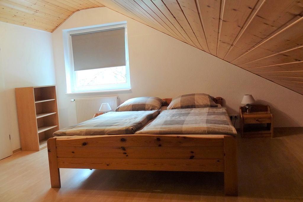 Zur dieser Ferienunterkunft mit kostenfreiem WLAN gehören im Erdgeschoss ein Schlafbereich mit zwei Einzelbetten und im ersten Obergeschoss ein Schlafzimmer mit Doppelbett weiterhin ein Wohnbereich mit Doppelschlafcouch, Kaminofen (Kaminholz ist nicht inbegriffen) und Parkettfußboden, ein Bad mit Dusche und eine Terrasse mit Landblick.