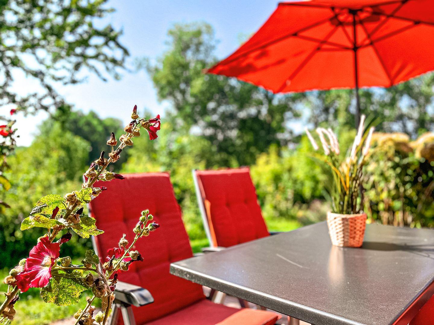 Auf der geschützten, uneinsehbaren Sonnenterrasse in Süd-West Lage mit unverbautem Blick genießt du die herrliche Natur. Zum Haus gehören Gartenstühle mit Auflagen, Tisch und Sonnenschirm. Im Erdgeschoß, der Terrasse zugewandt, liegt das gemütliche Wohnzimmer mit integrierter Küchenzeile. Ein romantisches Feuer im Kaminofen schafft Behaglichkeit an kühleren Abenden. Für Unterhaltung durch Stereoanlage, Fernseher, Videorecorder und DVD -Player ist gesorgt.