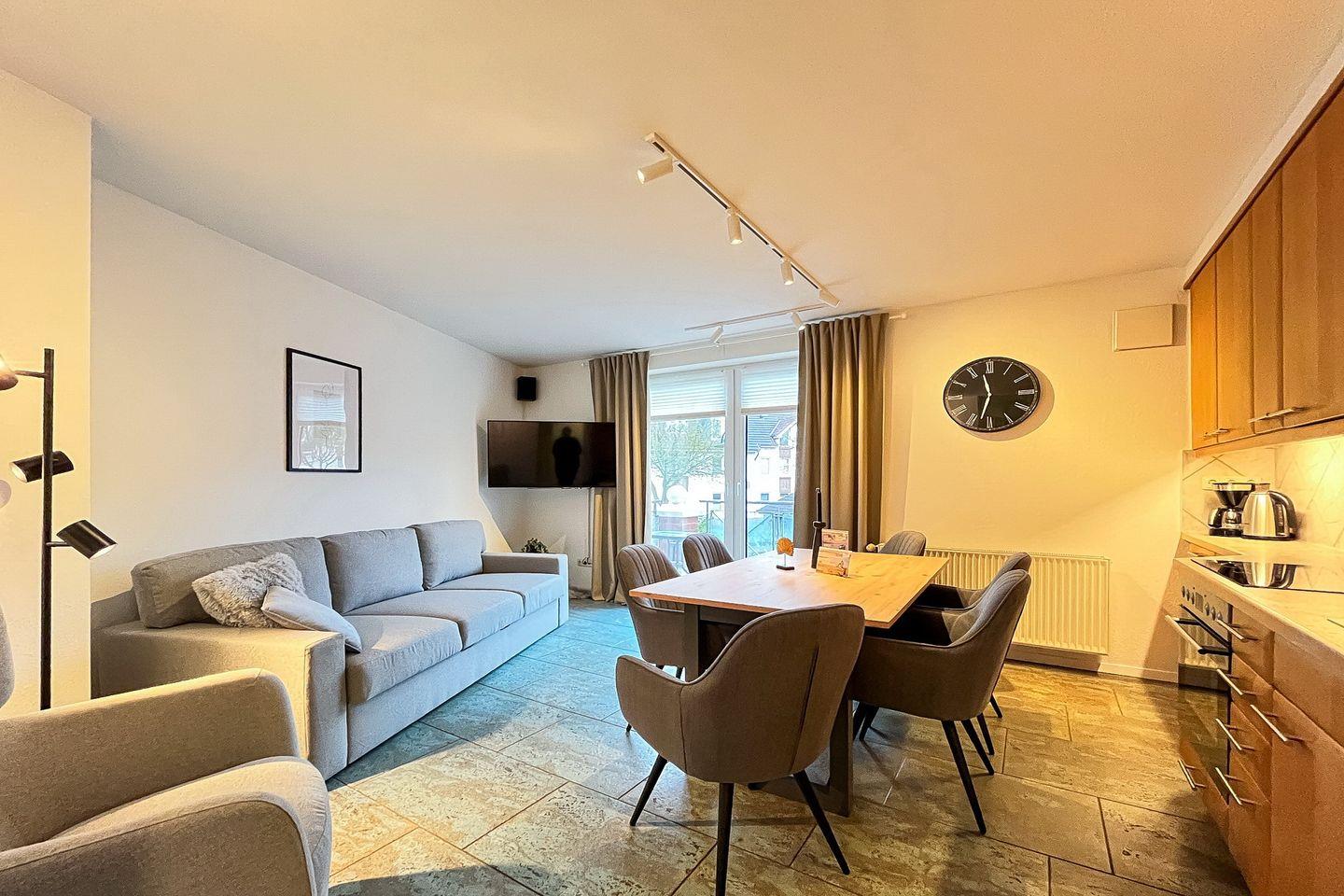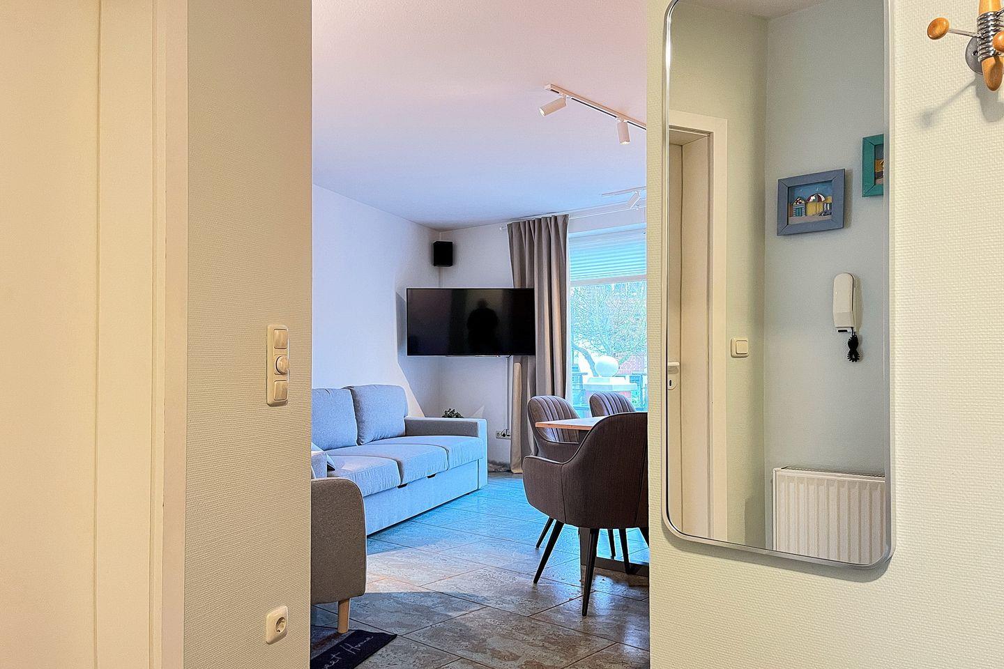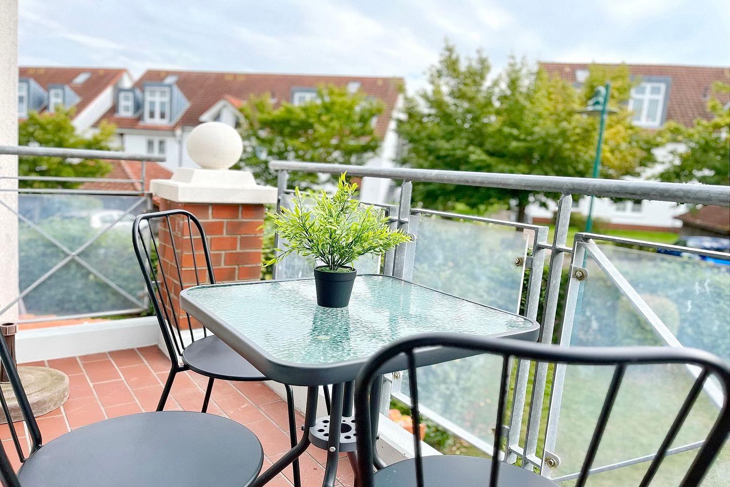 Du bewohnst im Obergeschoss ein komfortables 3-Zimmer-Apartment mit Balkon in Südlage. Es erwartet dich ein Wohn-/ Essbereich, ein Schlafraum, eine Küche sowie ein Duschbad. Die Strandentfernung beträgt von der Anlage Sünnslag ca. 400 m.