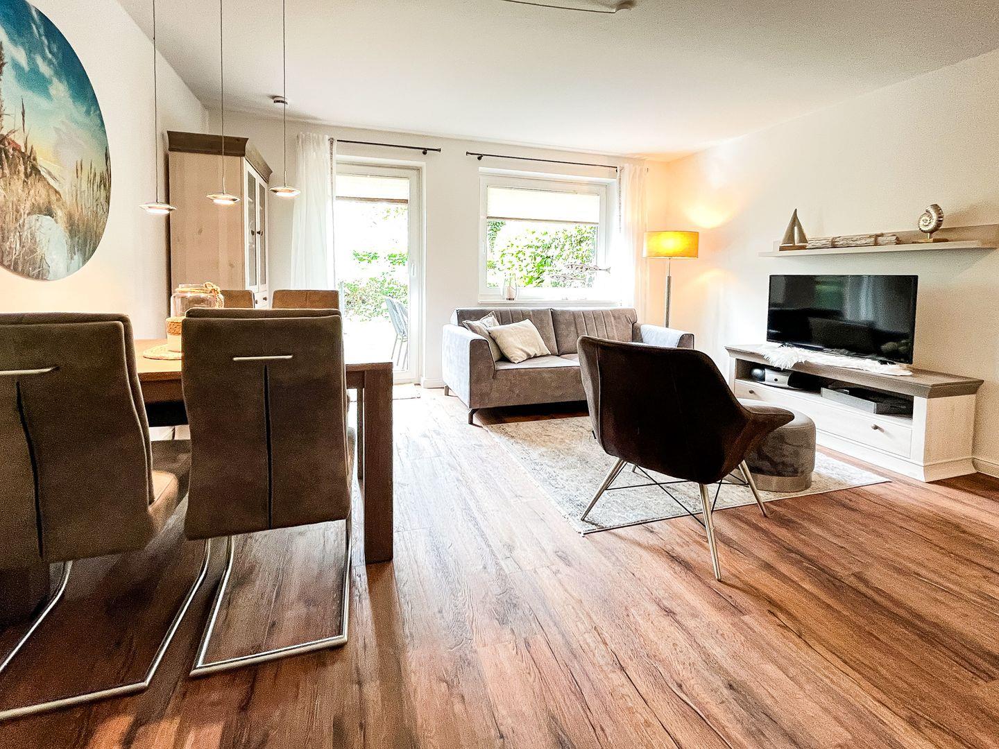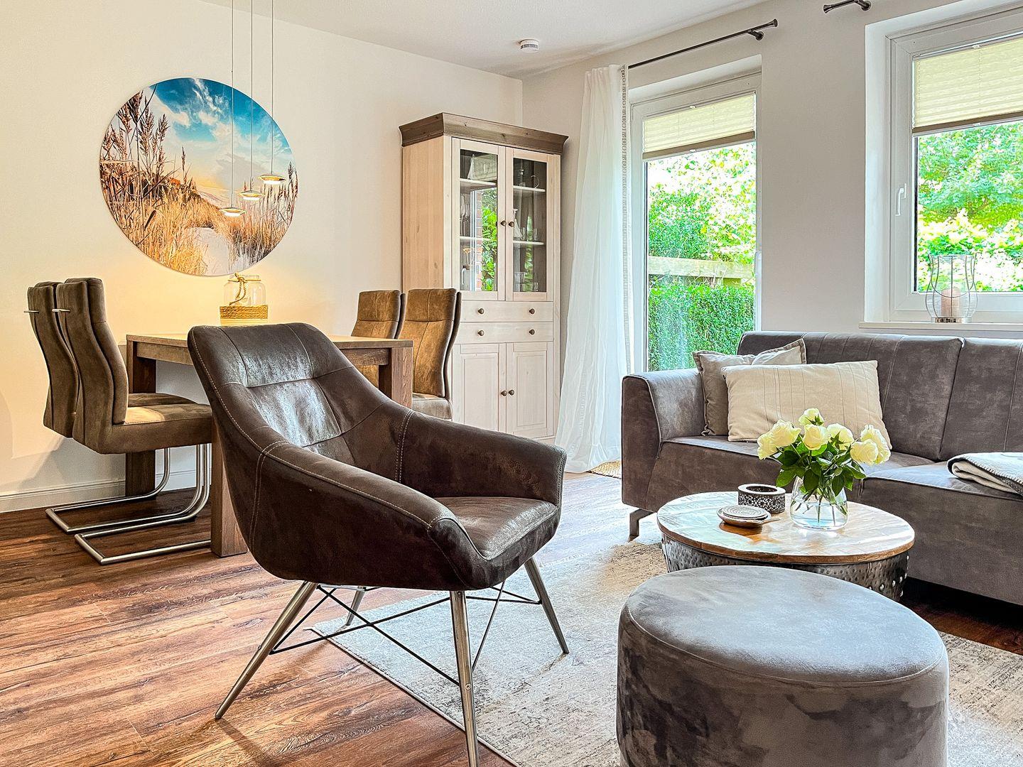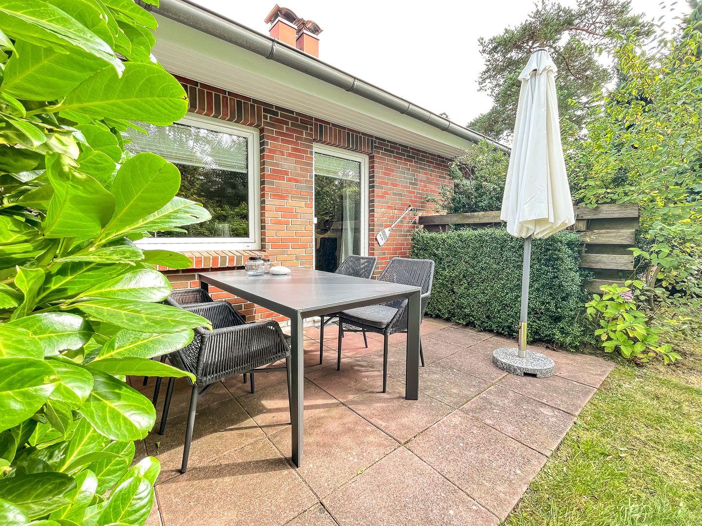 Im Wohnzimmer lädt das gemütliche Sofa zum Entspannen ein. Ein Flachbild-TV und eine kleine Musikanlage mit CD-Player bieten umfangreiche Abwechslung. Das Ferienhaus verfügt über eine schöne süd-westlich ausgerichtete Terrasse, die vom Wohnzimmer aus betretbar ist. Selbstverständlich findest du bequeme Gartenstühle mit Auflagen vor. Du findest hier den idealen Platz für die Entspannung in freier Natur.