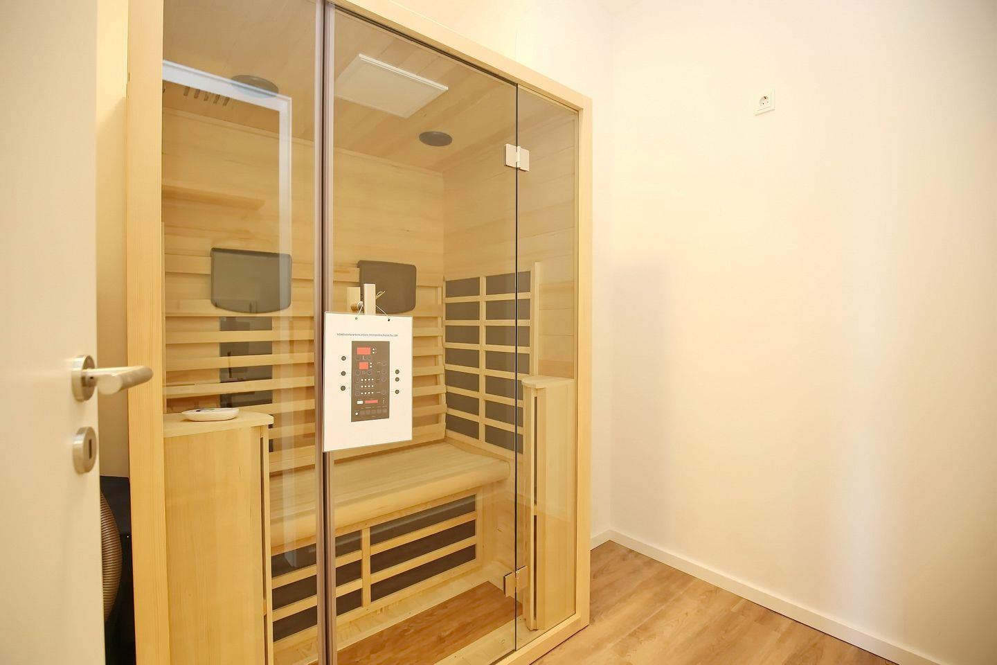 Die in der Wohnung integrierte Infrarotsauna steht dir kostenfrei zur Verfügung.