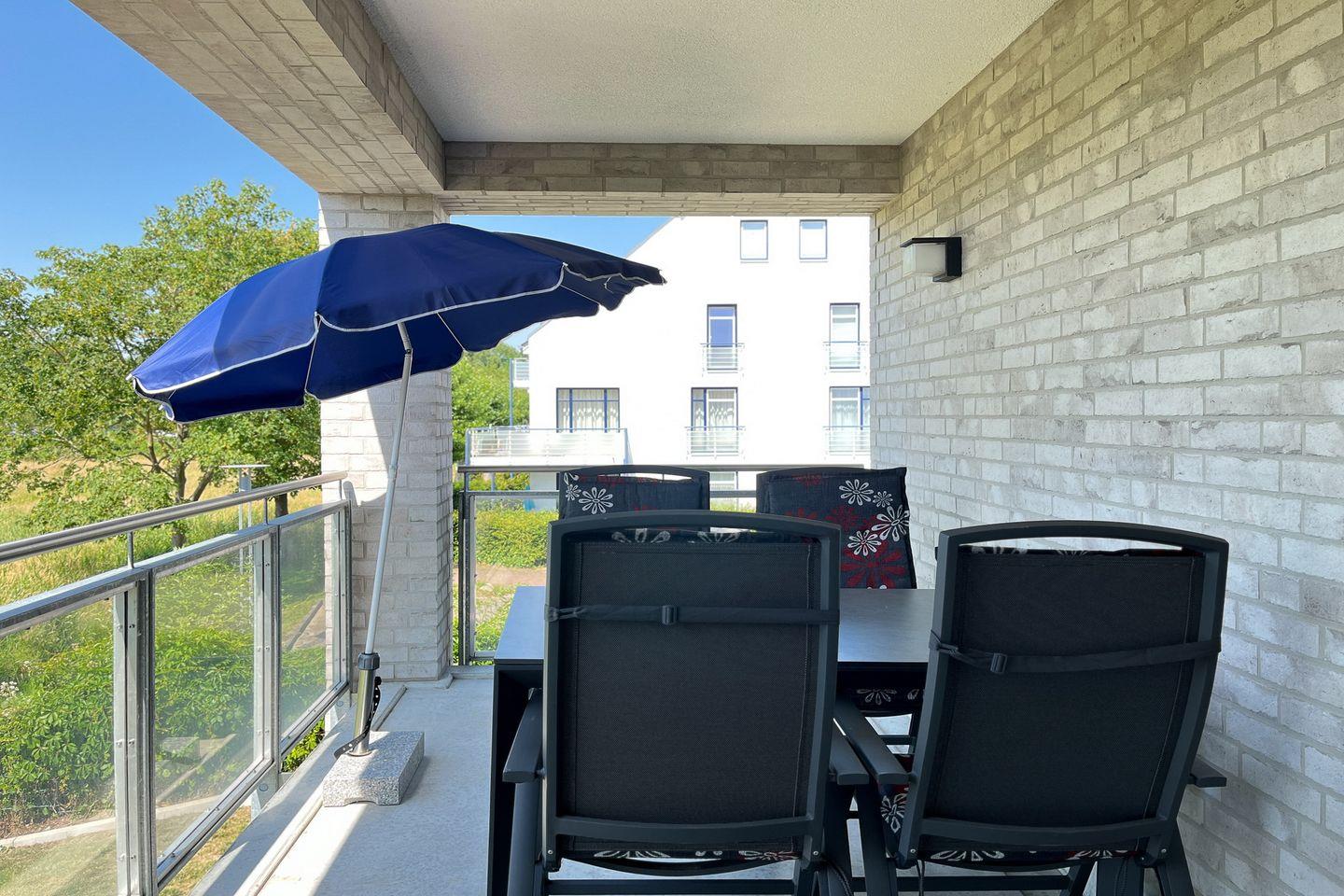 Die 2-Zimmer-Wohnung im Haus 1 der Weißen Villen ist ca. 61 m² groß und bietet Platz für bis zu 4 Personen (2 Erwachsene + 2 Kinder). Die Ferienwohnung befindet sich im 1. Obergeschoss. Der Balkon ist nach Süd-Westen ausgerichtet. Ein Fahrstuhl sowie WLAN (ohne Gewähr) sind vorhanden.