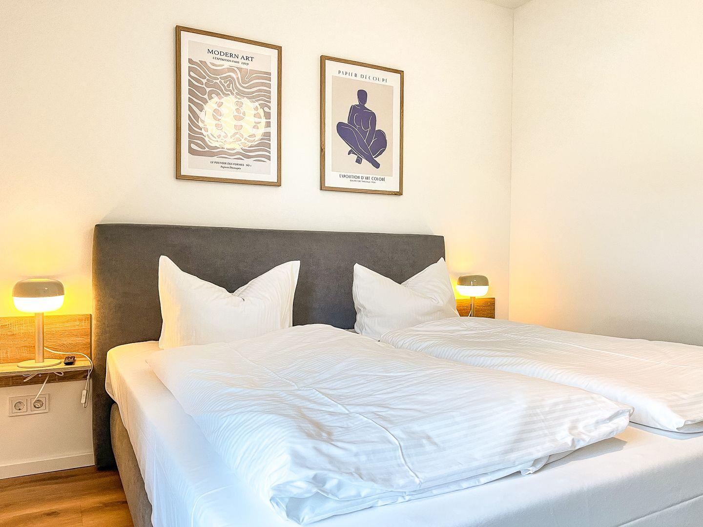 Als Service findest du in den Weißen Villen bereits 2 bezogene Betten im Schlafzimmer für 2 Personen vor.