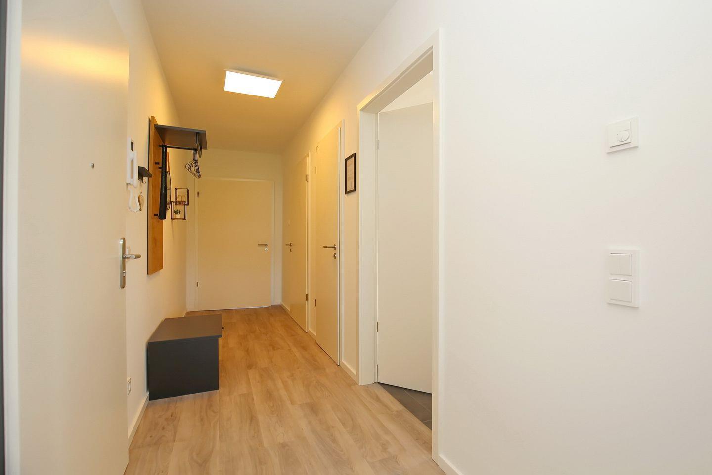 Deine ca. 68 m² große Ferienwohnung ist liebevoll und modern eingerichtet. Du verfügst über ein Wohnzimmer, eine Küche, zwei Schlafzimmer, ein Badezimmer sowie einen Balkon. In der gesamten Wohnung ist ein Vinylbelag ausgelegt. Das Badezimmer ist gefliest. Die Strandentfernung beträgt ca. 200 Meter.