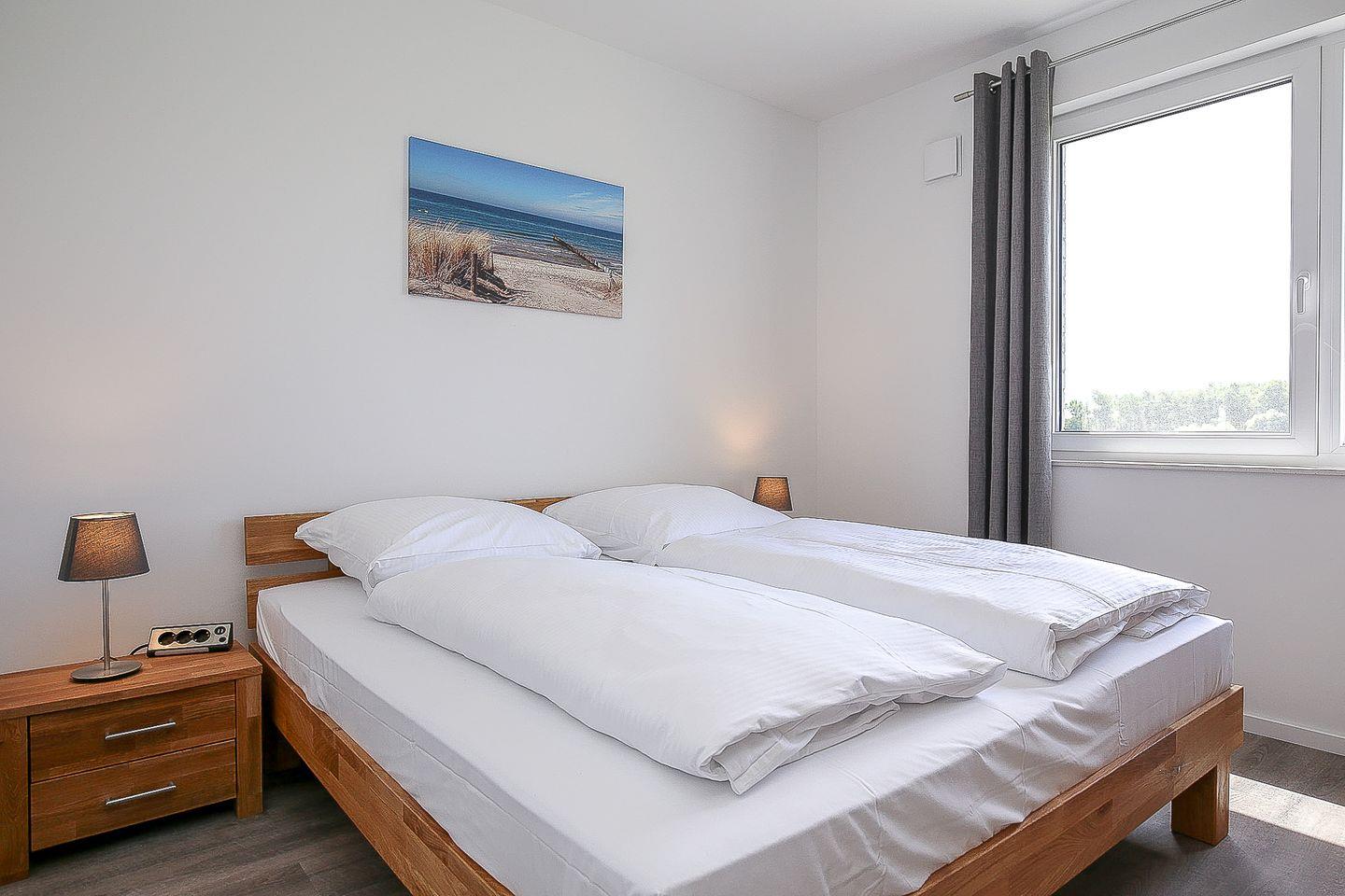 Als Service findest du in den Weißen Villen bereits 2 bezogene Betten im Schlafzimmer für 2 Personen vor.