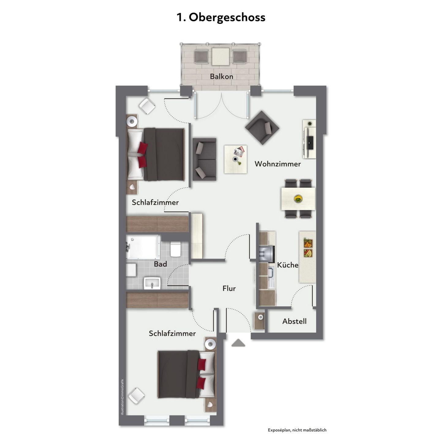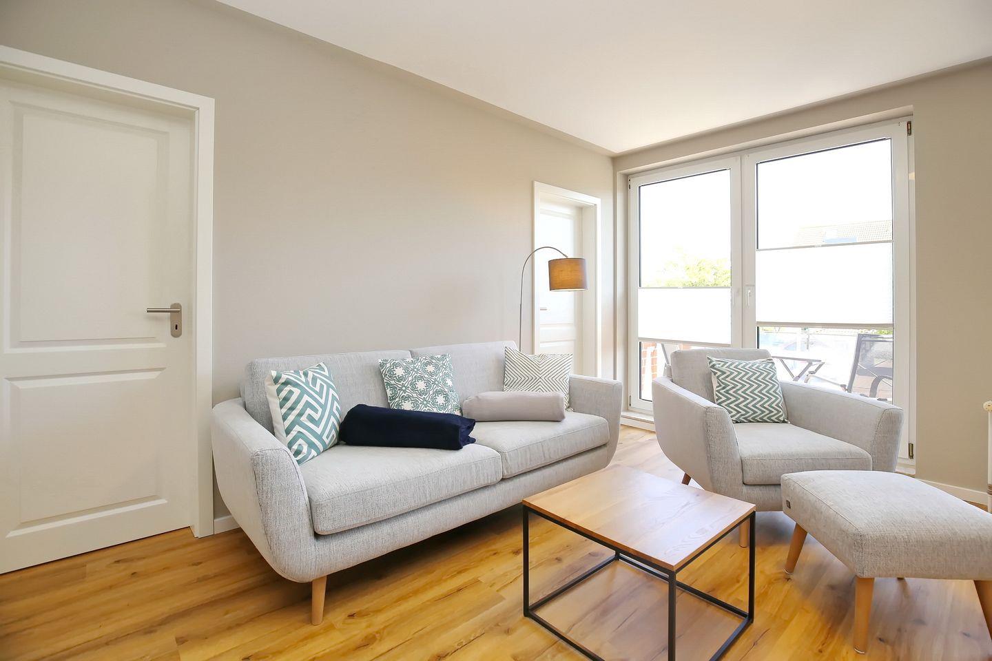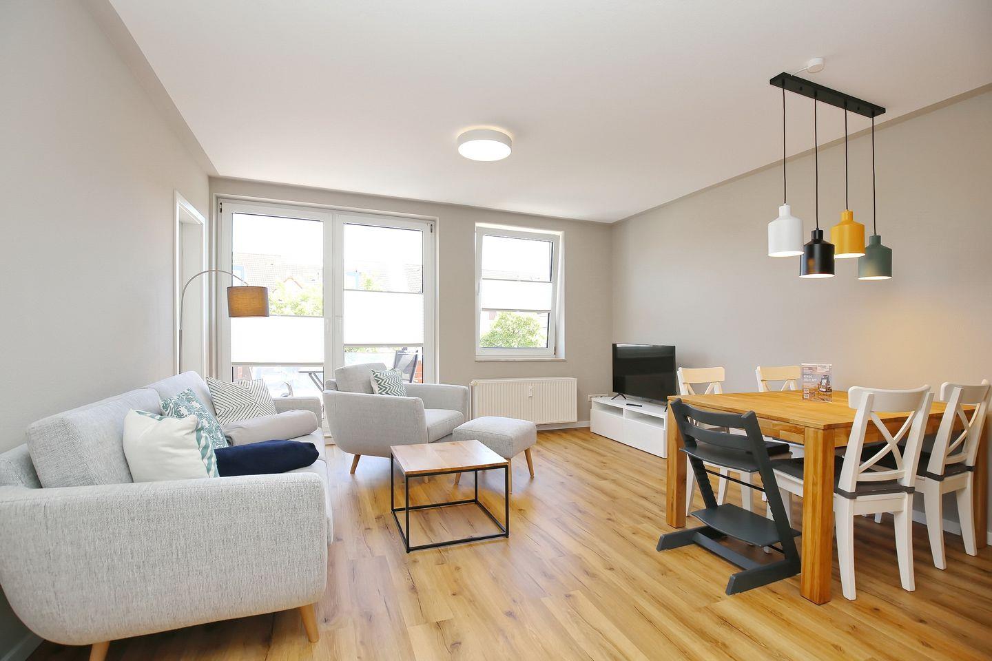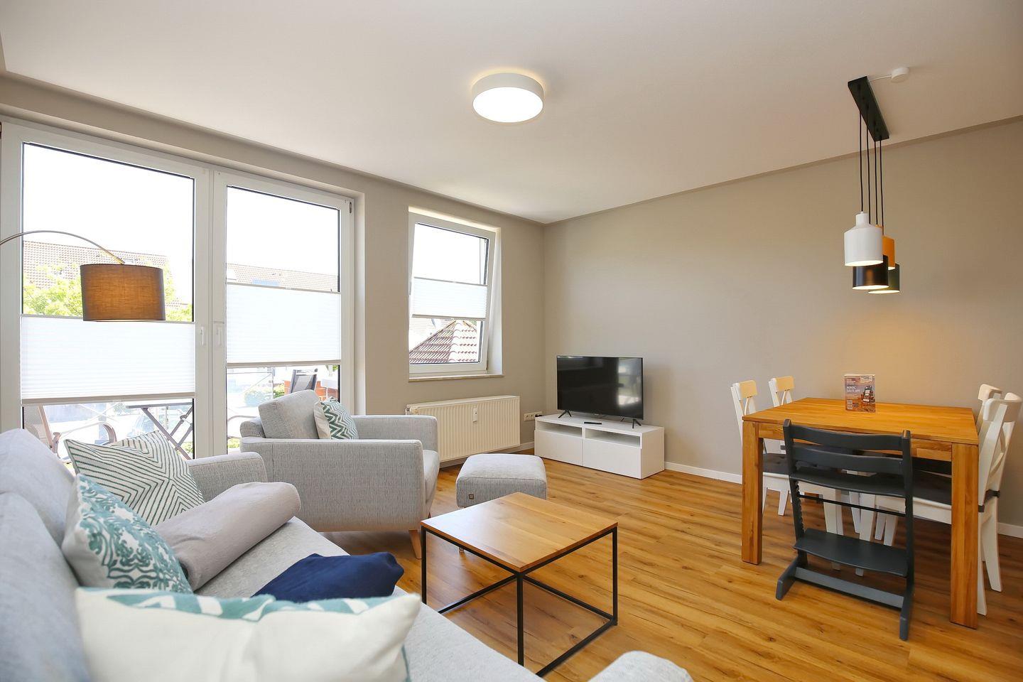 Du bewohnst eine gemütliche und moderne 3-Zi.-Wohnung im 1. OG. Für erholsame Urlaubstage stehen dir auf ca. 60 m² ein Wohnzimmer, zwei Schlafzimmer, eine Küche, ein Duschbad und ein Balkon zur Verfügung. Die Entfernung zum Strand beträgt von der Ferienanlage Sünnslag ca. 400 m.