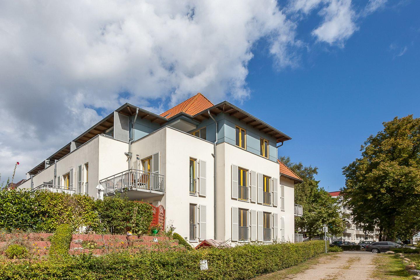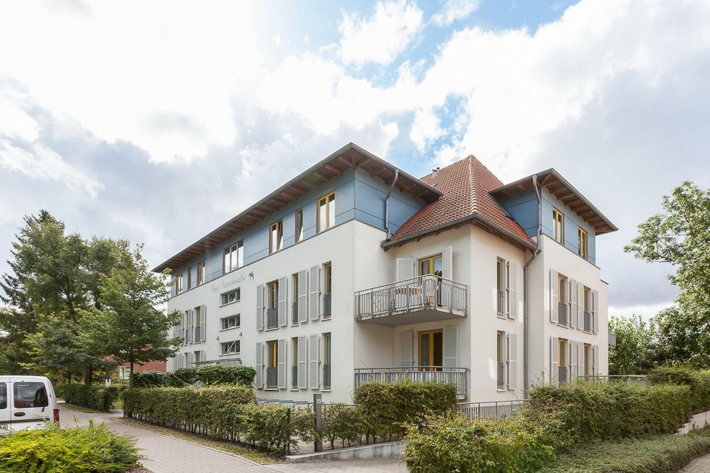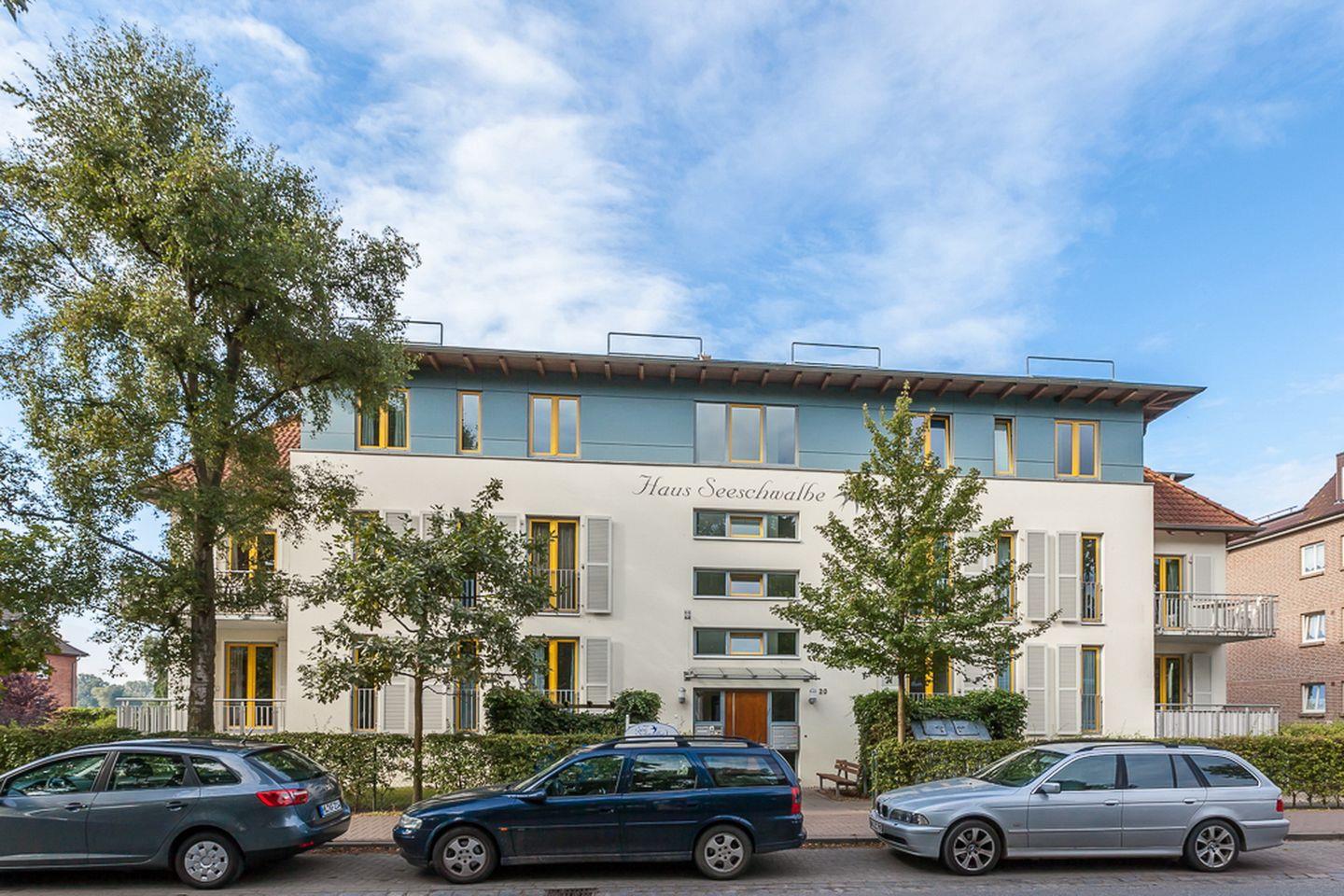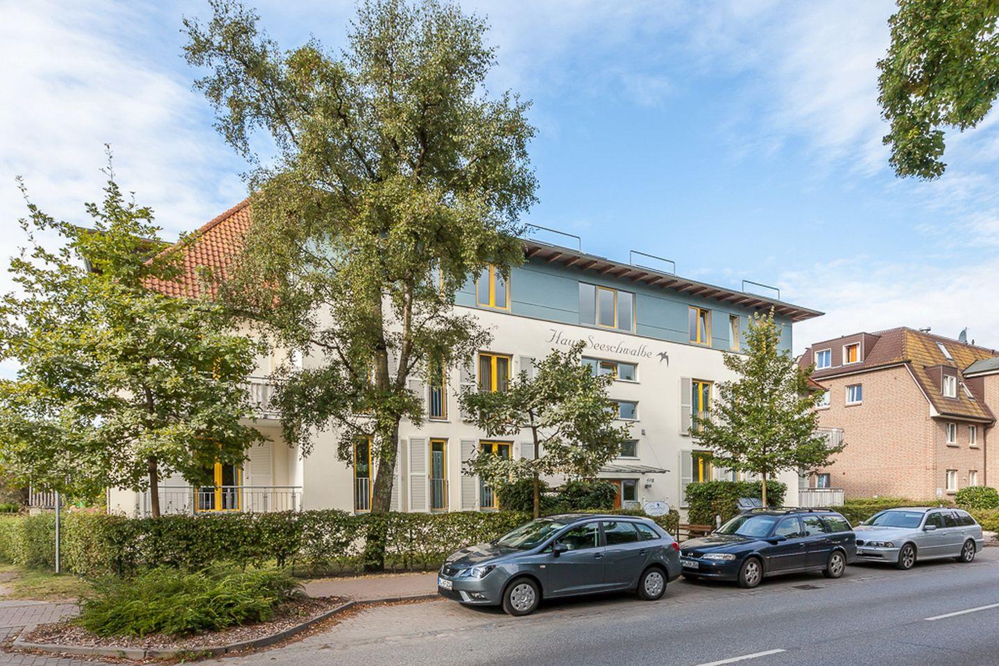 Das sonnige Appartementhaus ist sehr zentral gelegen. In unmittelbarer Nähe befinden sich mehrere Einkaufsmöglichkeiten. Das Haus Seeschwalbe hat eine Tiefgarage und einen Fahrstuhl. In der Tiefgarage befindet sich eine freie, offene Fahrradabstellmöglichkeit Nr. 16.