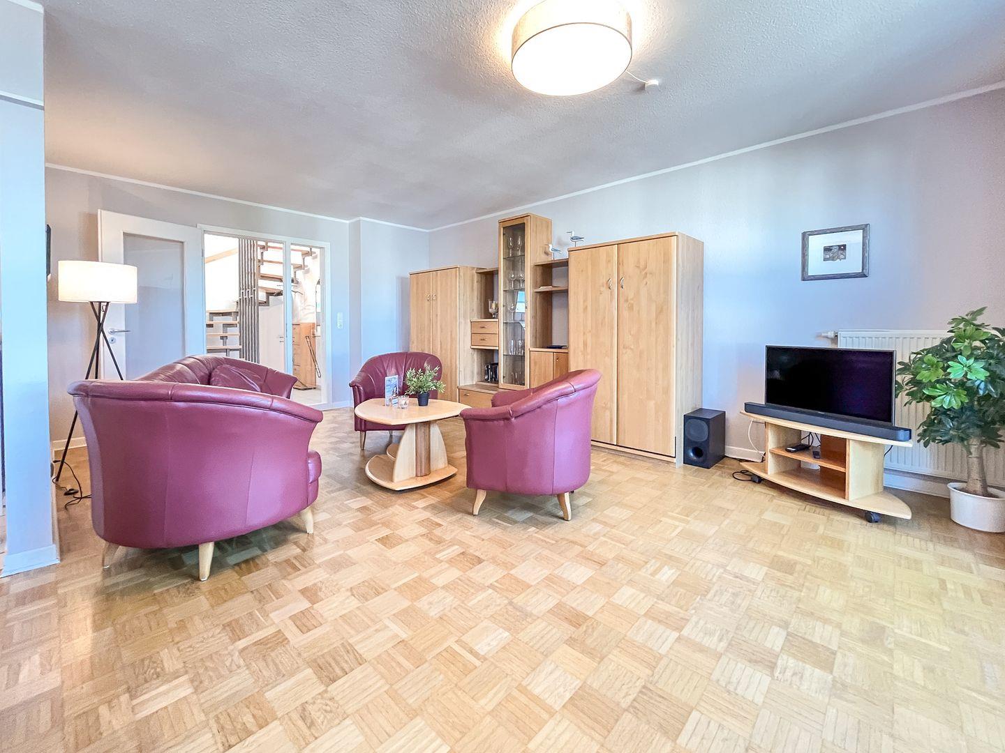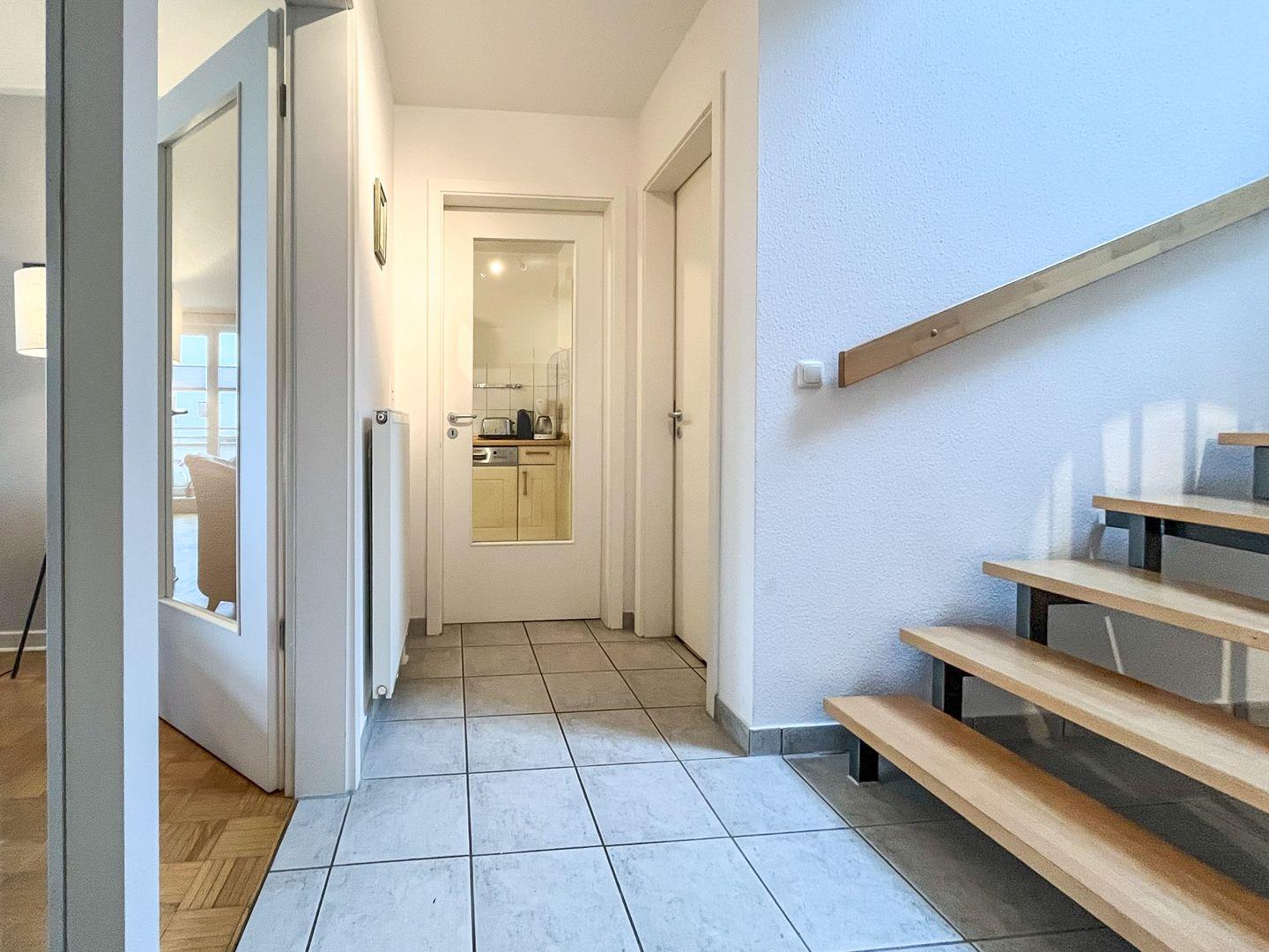 Die Maisonette-Ferienwohnung 16 im Haus Seeschwalbe ist eine 3-Zimmer-Wohnung mit Balkon. Auf 87 qm haben bis zu 4 Personen Platz. Das Haus Seeschwalbe hat einen Fahrstuhl. WLAN (ohne Gewähr) inklusive.