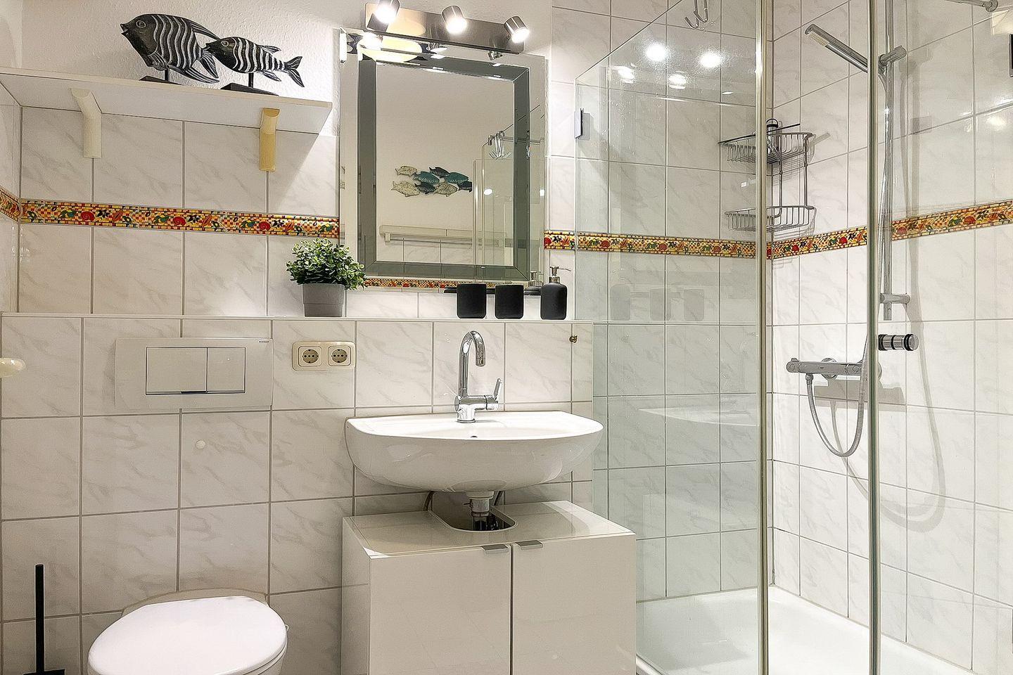 Ein gefliestes Duschbad und eine Waschmaschine sind ebenfalls vorhanden. WLAN (ohne Gewähr) steht dir kostenlos zur Verfügung. Dein Hund ist in dieser Ferienunterkunft willkommen.