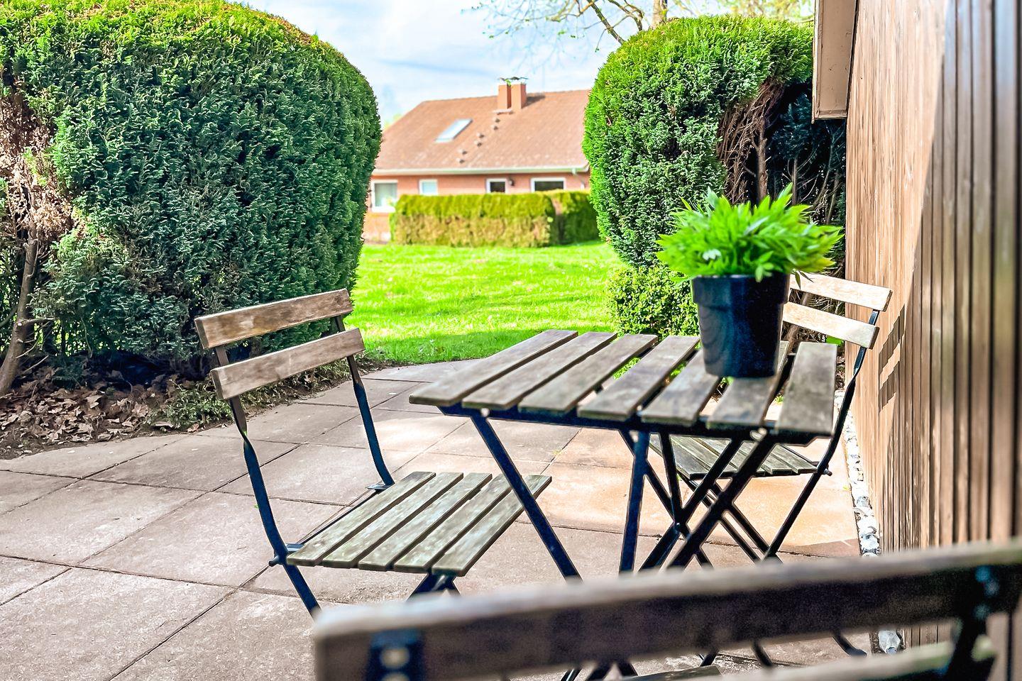 Aus dem Wohnbereich heraus gelangst du auf die möblierte Terrasse. Im Wohnzimmer befindet sich neben einem gemütlichen Sofa der Essbereich. Für deine Unterhaltung stehen ein Flachbild-TV und eine Stereoanlage zur Verfügung. Für Gemütlichkeit sorgt der Kamin.