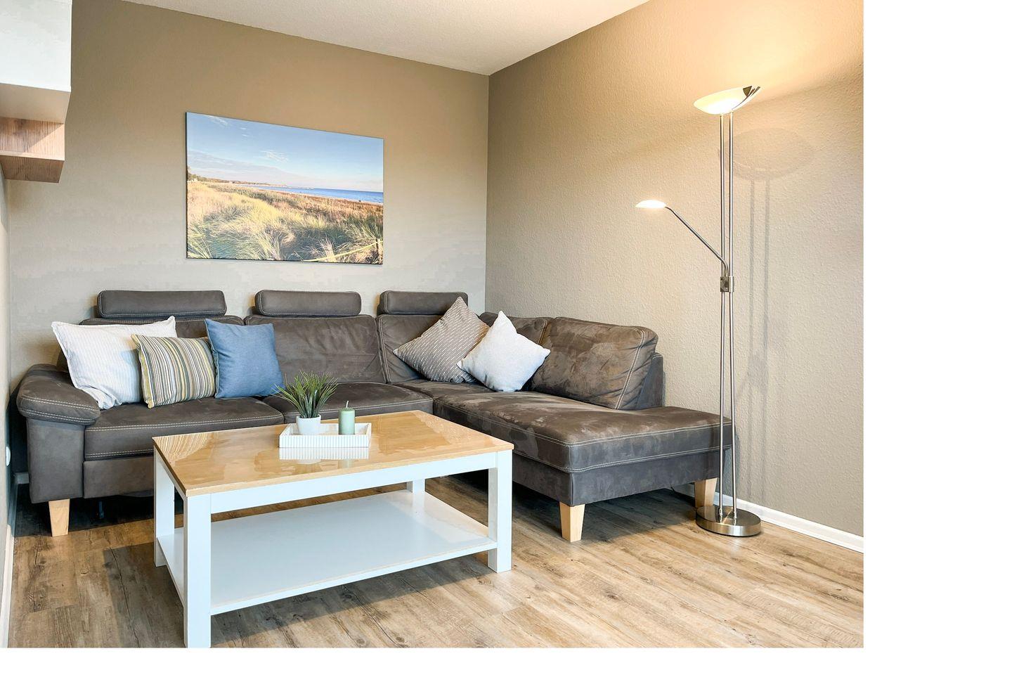 Die großzügige, ca. 68 m² große Wohnung verläuft über zwei Ebenen und bietet dir ein Wohnzimmer mit Küchenzeile und Essbereich, 2 Schlafzimmer, 1 Bad und einen West-Balkon. Zum Strand sind es nur 70 Meter.