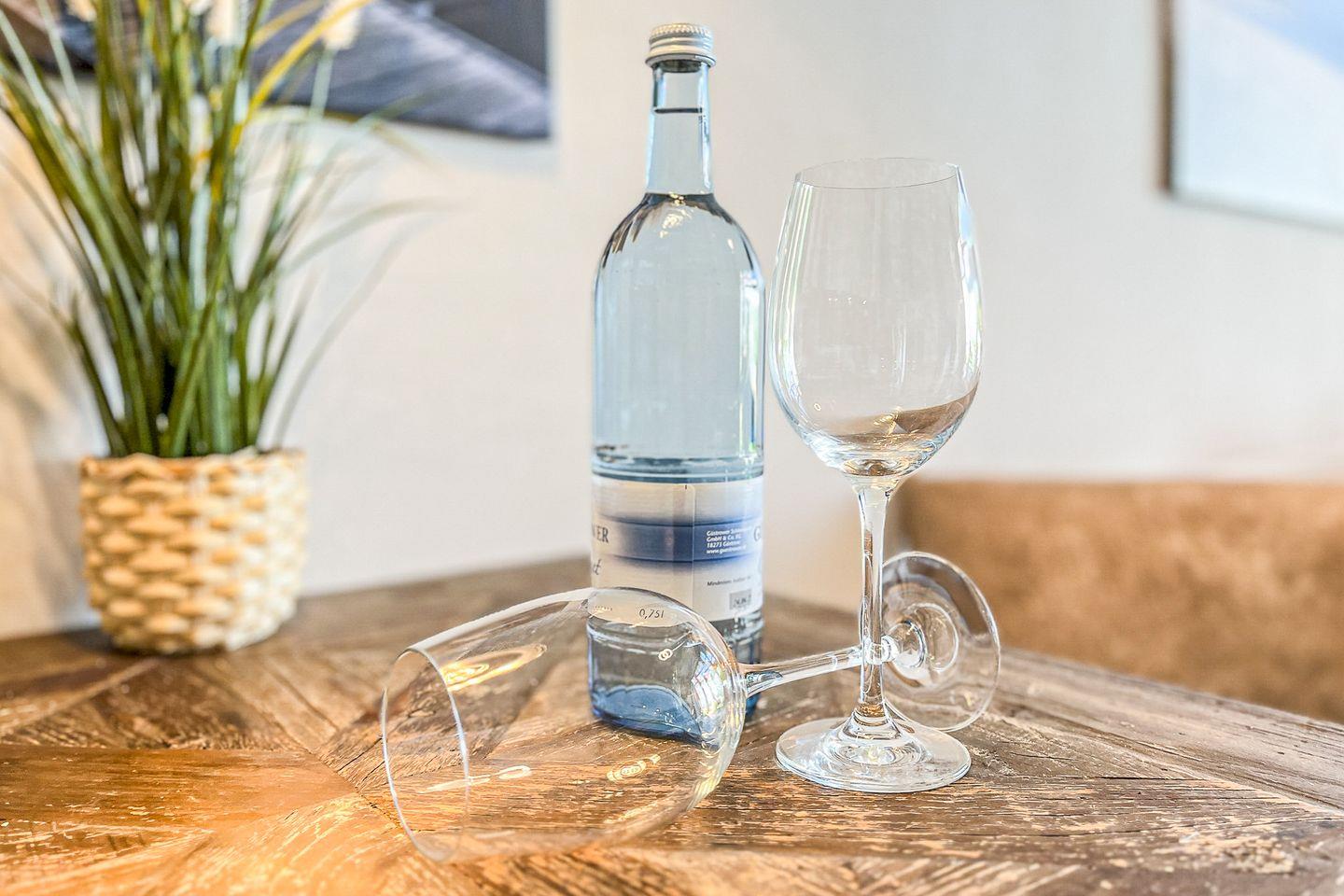 Die gut ausgestattete Küche ist offen zum Wohnbereich gestaltet und bietet Cerankochfeld, Backofen, Kühlschrank mit Gefrierfach, Kaffeemaschine, Wasserkocher, Toaster sowie sämtliche Küchenutensilien – ideal für Selbstversorger.