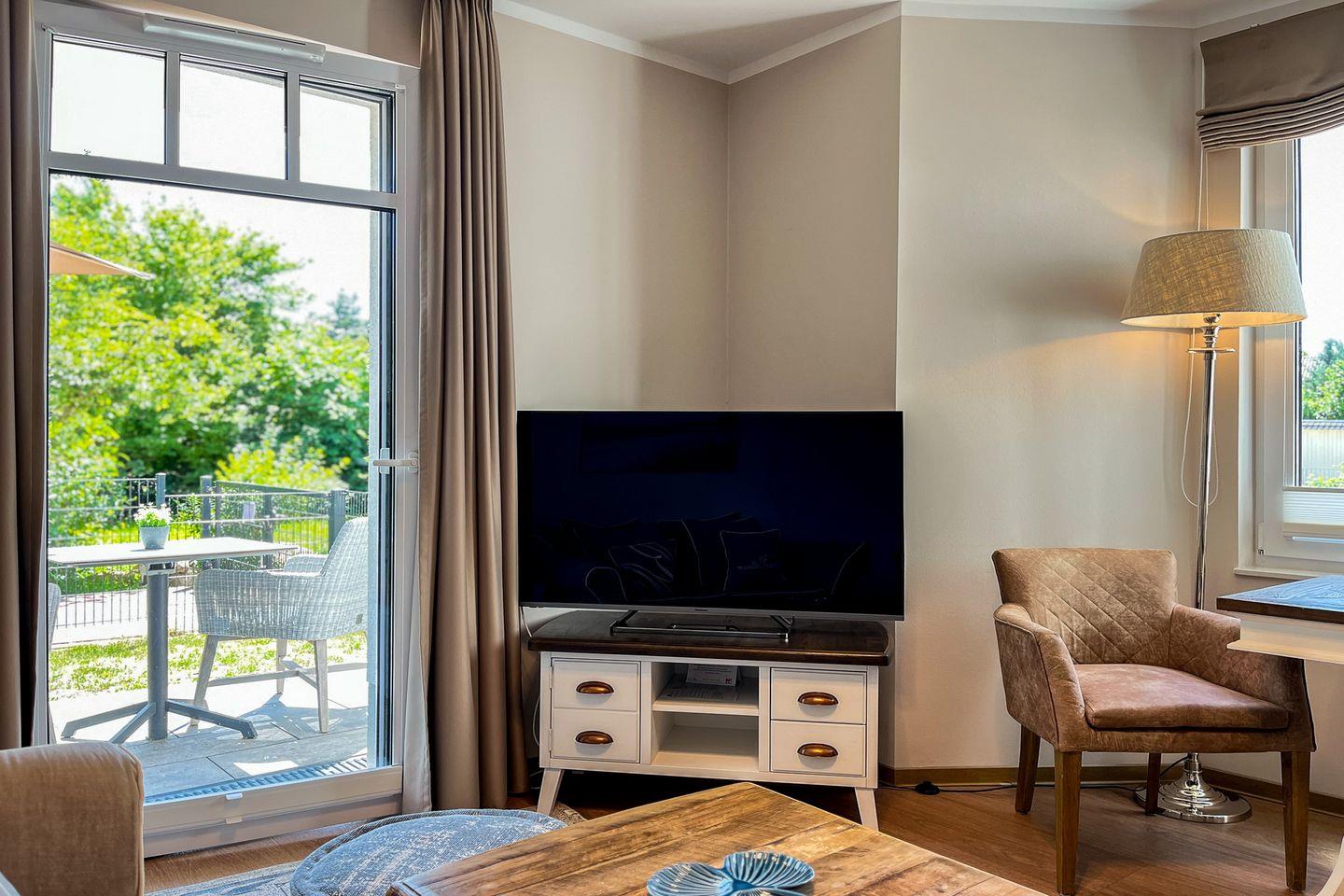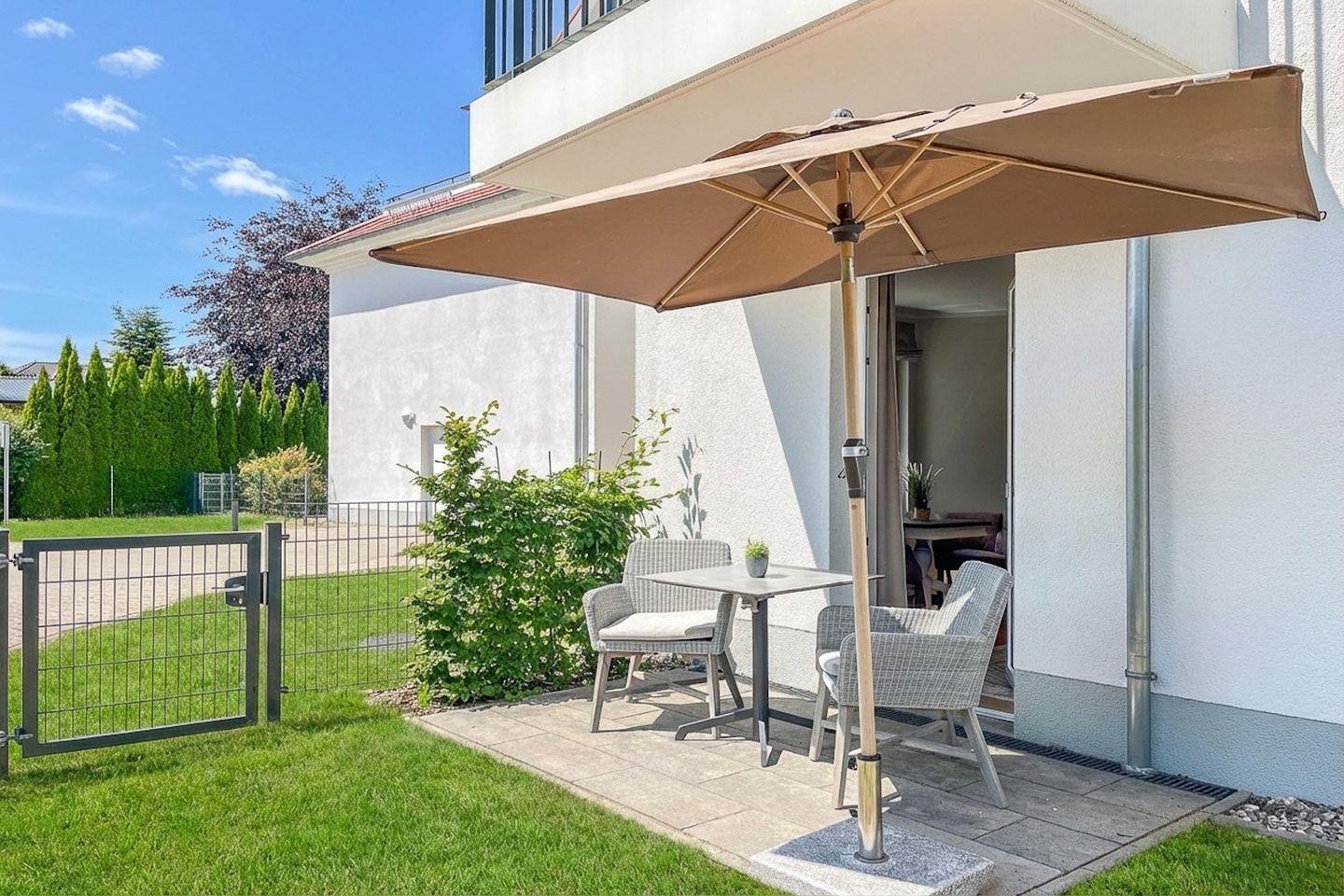 Ein besonderes Extra ist die möblierte Terrasse – hier kannst Du die frische Seeluft genießen, die Sonne genießen oder entspannt in den Tag starten. Die Terrasse ist von mittags bis in die späten Nachmittagsstunden sonnig gelegen und bietet eine angenehm ruhige Atmosphäre. Durch die geschützte Lage eignet sie sich ideal zum Lesen, Entspannen oder für gemütliche Mahlzeiten im Freien. Zudem ist von hier aus ein kleiner Blick in Richtung Ostsee möglich.