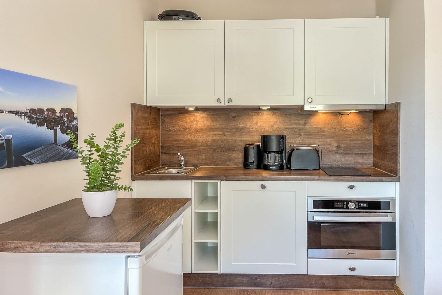 Die moderne Küchenzeile ist vollständig eingerichtet und lässt auch im Urlaub keine Wünsche offen: Cerankochfeld, Backofen, Spülmaschine, Kaffeemaschine, Wasserkocher, Toaster sowie umfangreiche Küchenutensilien und Geschirr stehen selbstverständlich zur Verfügung.