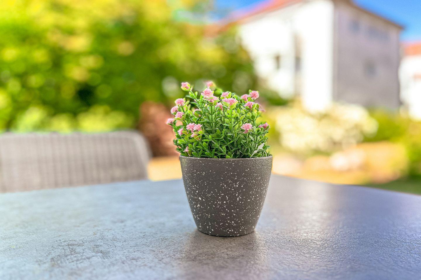 Ein besonderes Highlight ist die Terrasse mit Gartenmöbeln und Sonnenschirm – hier kannst Du den Blick ins Grüne genießen und wunderbar zur Ruhe kommen.