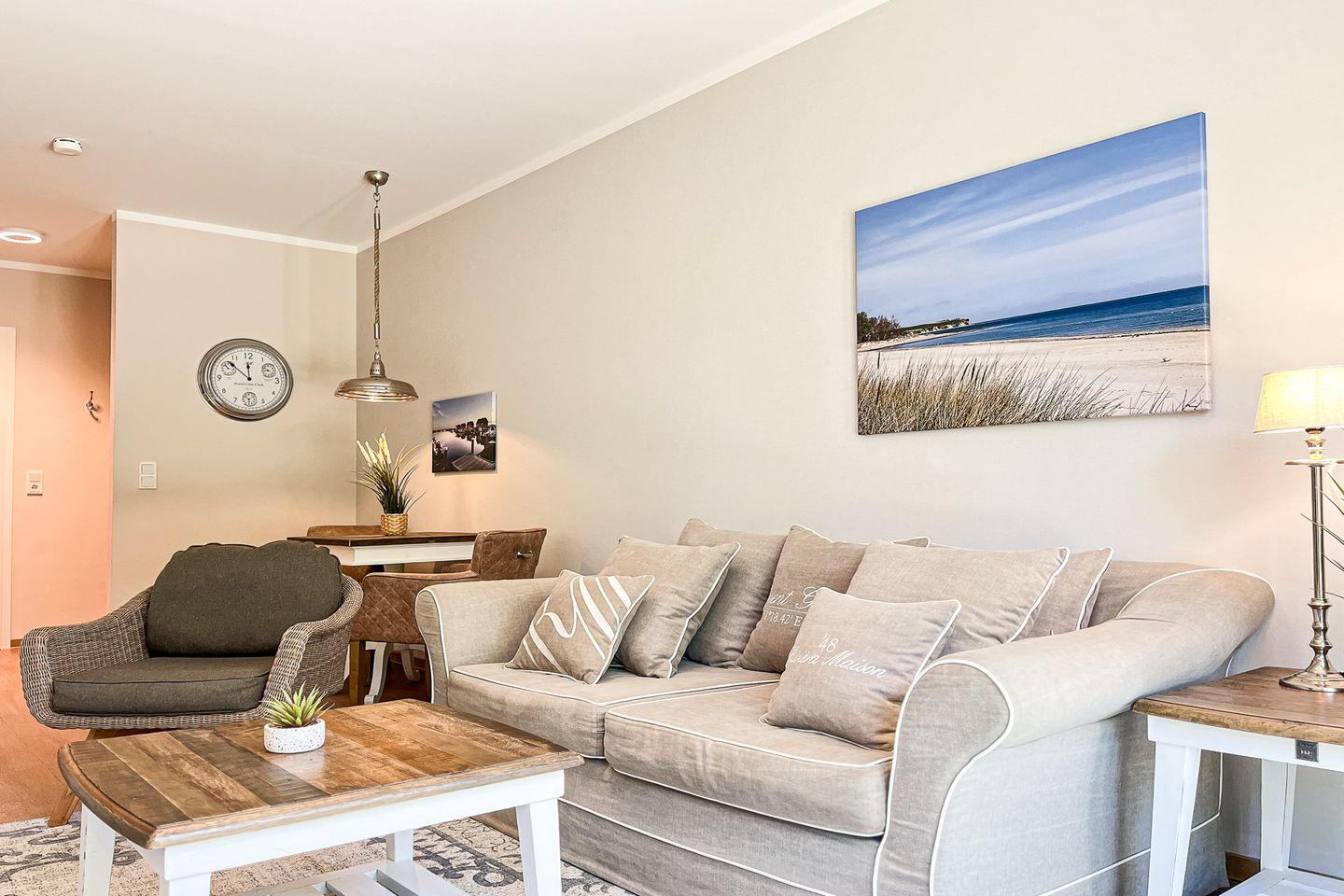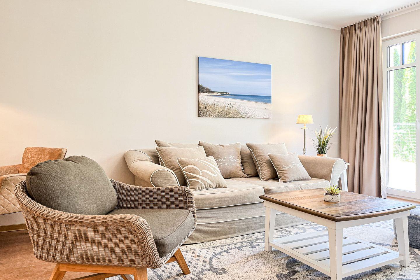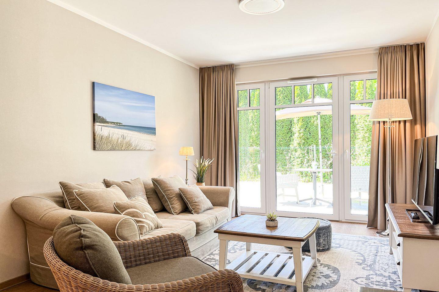 Dieses stilvolle Apartment im Erdgeschoss bietet auf ca. 48?m² eine hochwertige Ausstattung, modernen Komfort und einen schönen Blick ins Grüne – ideal für einen entspannten Ostseeurlaub zu zweit.