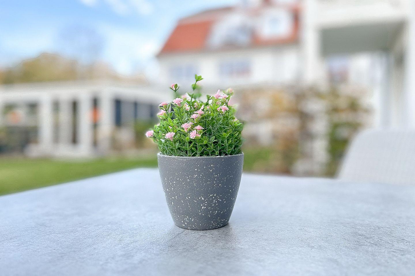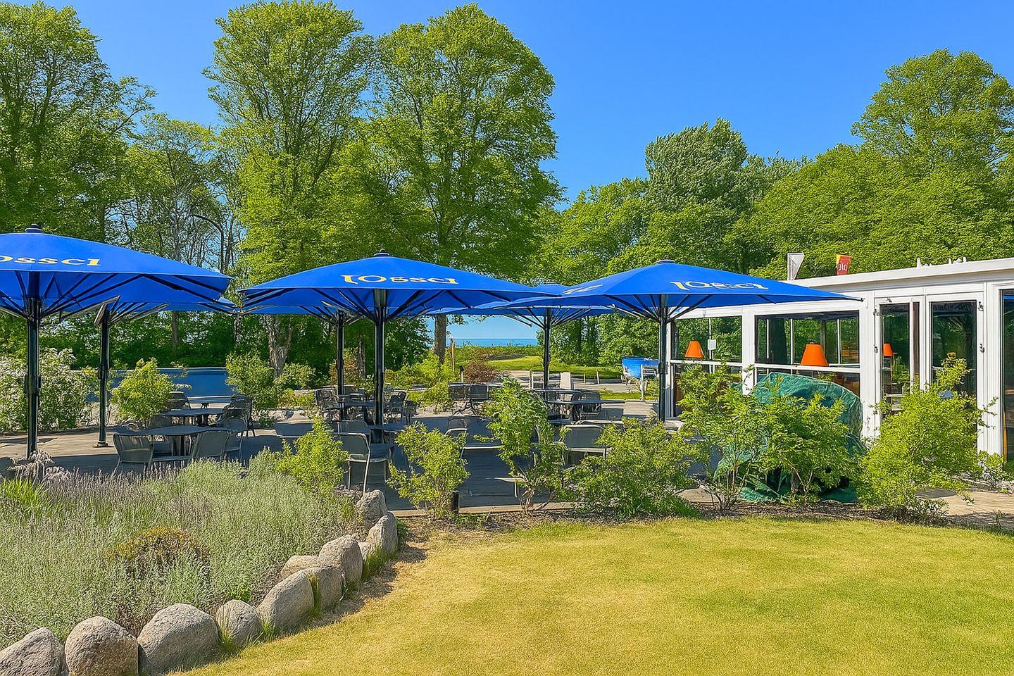 Der eingeschränkte Seeblick verleiht der Terrasse ein zusätzliches maritimes Flair.