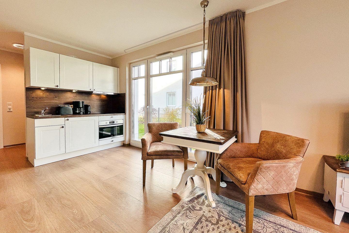 Die Ferienwohnung 18 im Baltischen Hof in Boltenhagen ist eine stilvolle 2-Zimmer-Wohnung für bis zu zwei Personen.