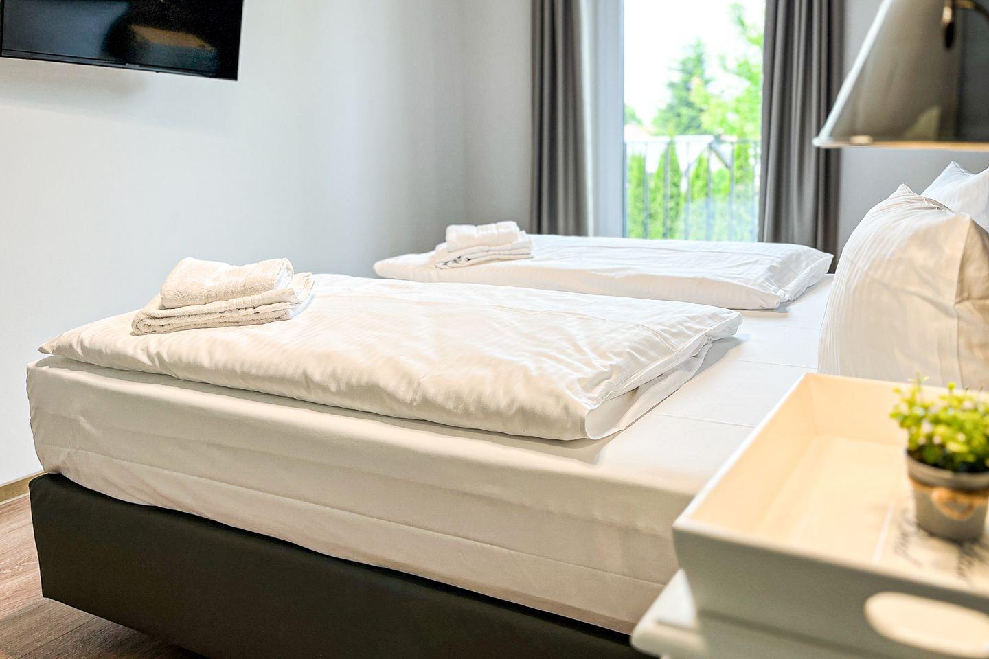 Als Service findest Du im Balitschen Hof bereits bezogene Betten sowie Handtuchsets für alle Gäste vor.