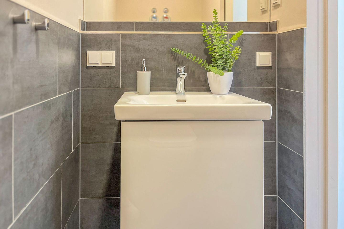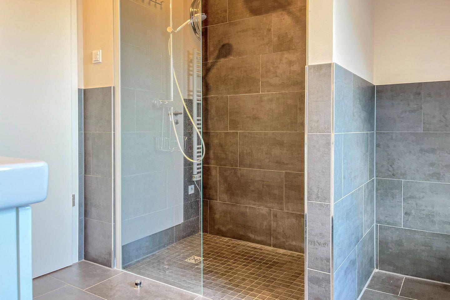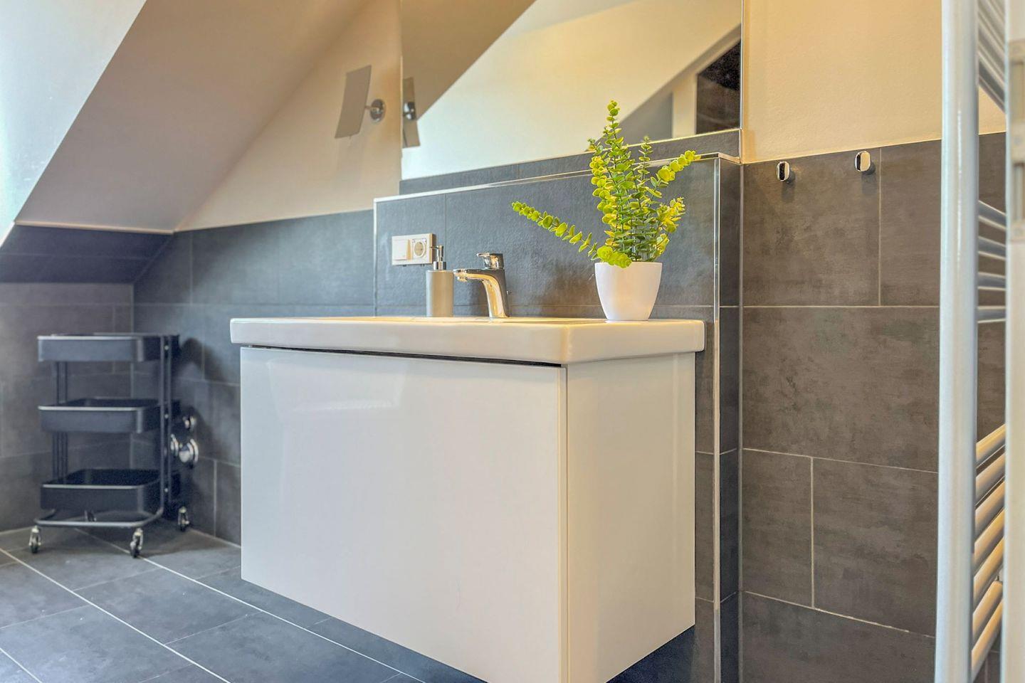 Besonderen Komfort bietet das moderne Badezimmer mit bodengleicher Dusche, Waschbecken, separatem WC, Kosmetikspiegel und Haartrockner.