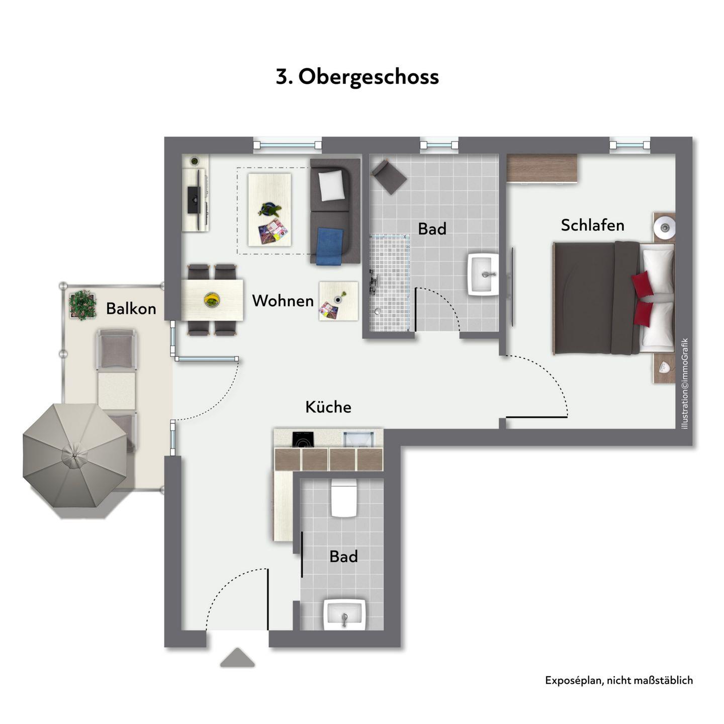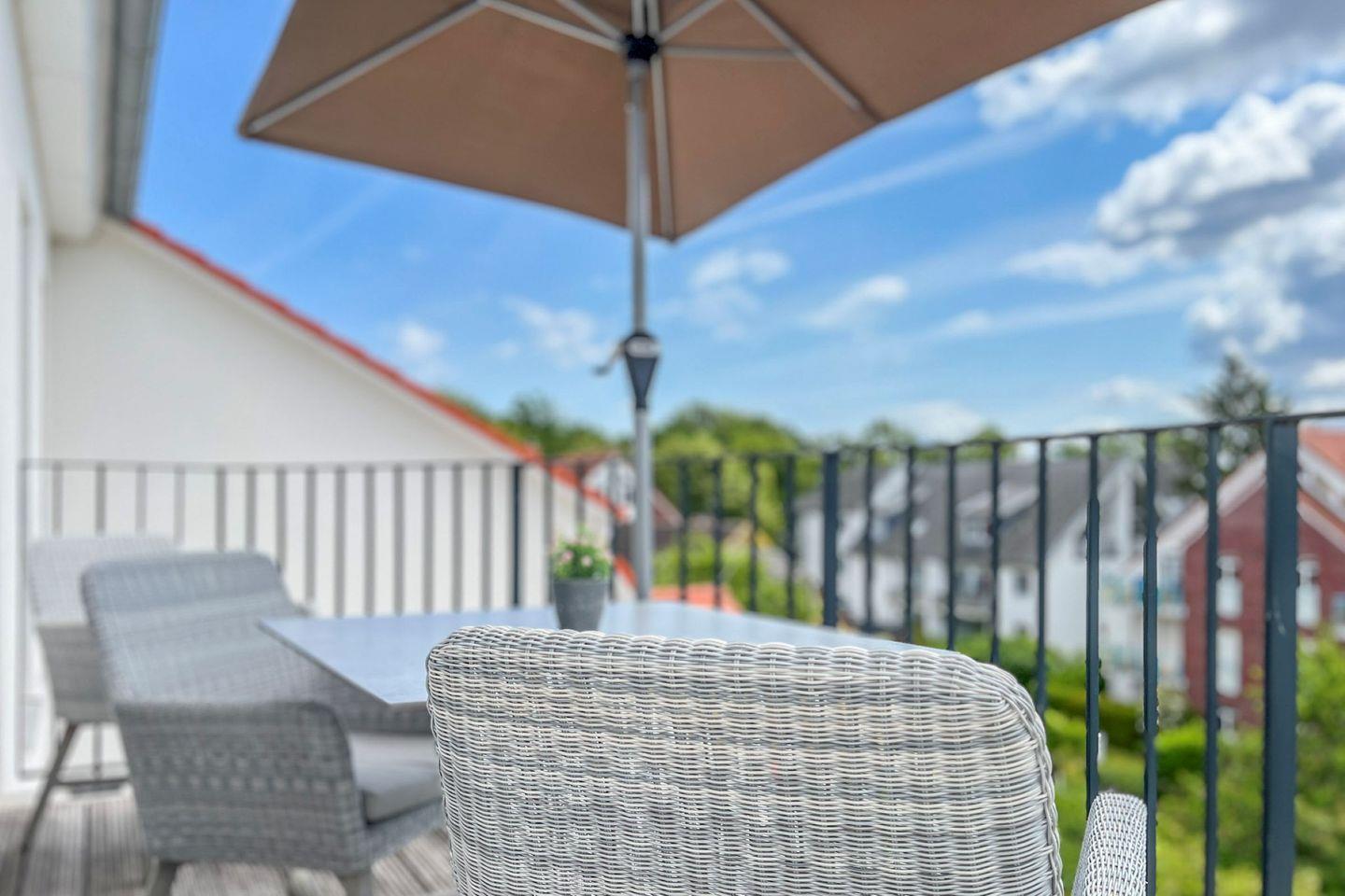 Ein weiteres Highlight ist der möblierte Balkon, der sich perfekt für ein Frühstück an der frischen Luft oder entspannte Abendstunden eignet.