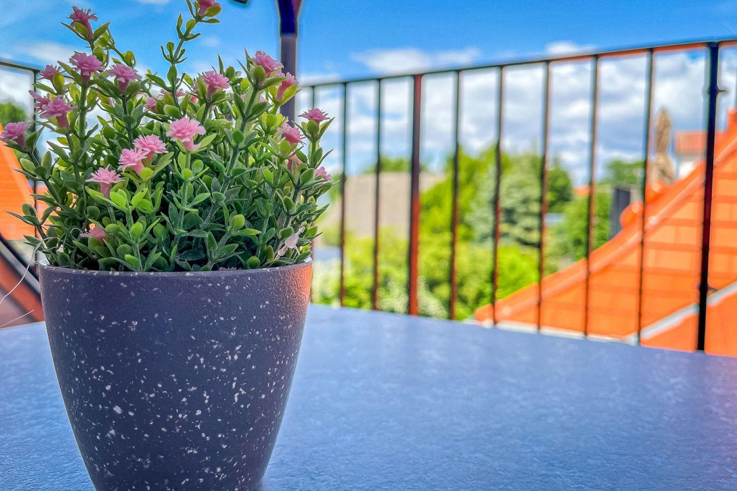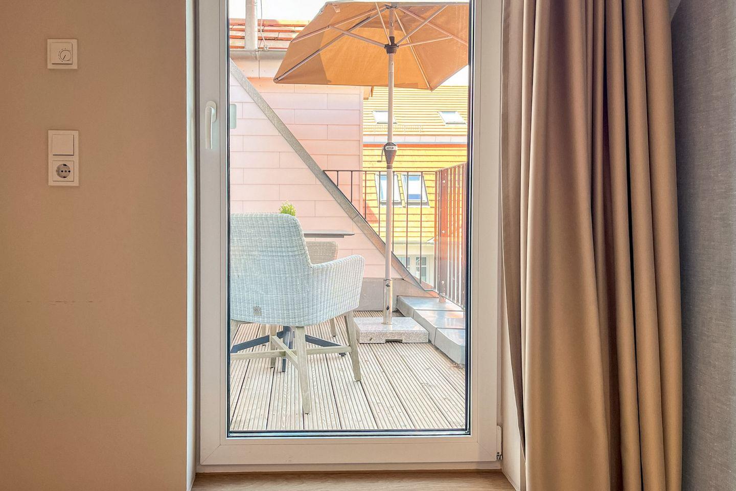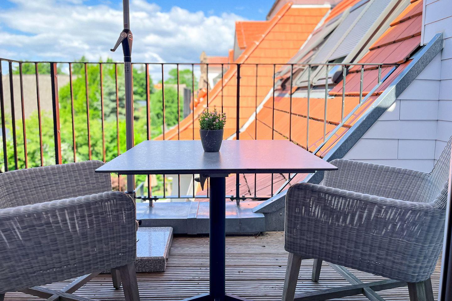 Ein Balkon mit Gartenmöbeln lädt Dich dazu ein, die frische Meeresluft zu genießen – ideal für ein Frühstück an der Sonne oder entspannte Lesestunden.
