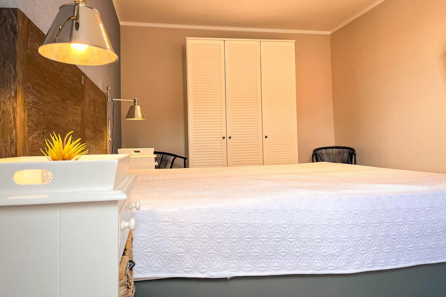 Im separaten Schlafzimmer sorgt ein Doppelbett (2x 90x200?cm) für erholsamen Schlaf. Das Sofa im Wohnzimmer wird als weiterer Schlafplatz genutzt.