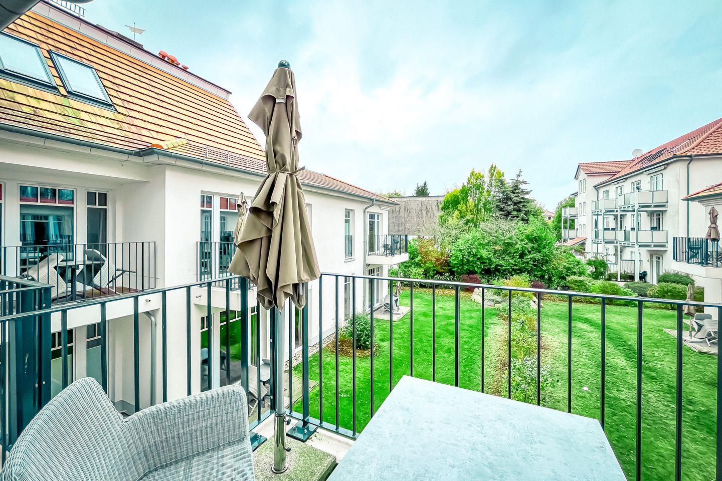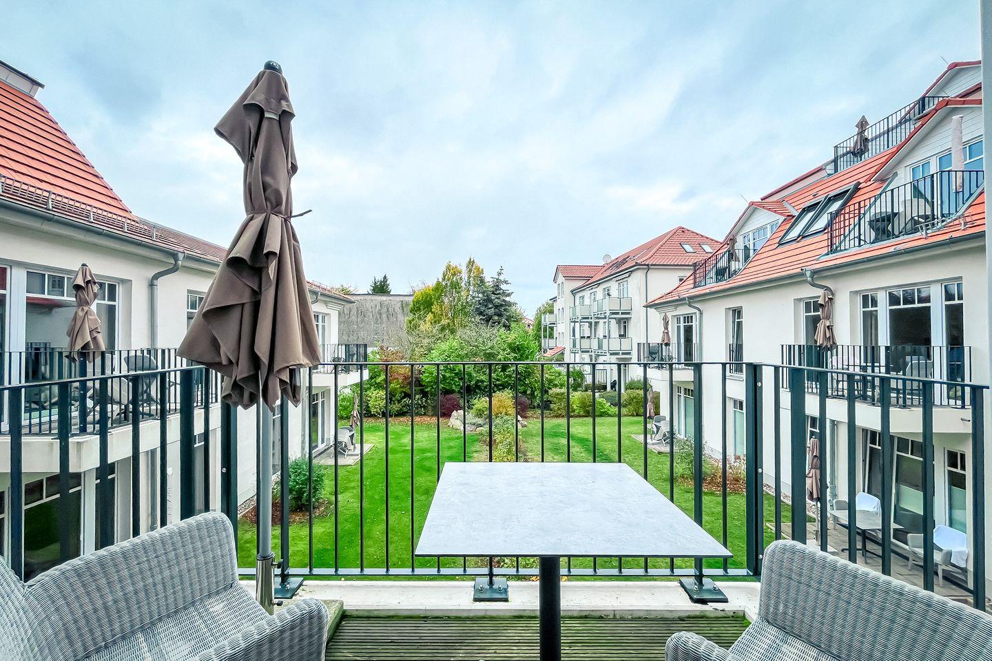 Ein Highlight ist der Balkon mit Gartenmöbeln und Sonnenschirm – perfekt für ein entspanntes Frühstück an der frischen Luft oder ein Glas Wein am Abend.