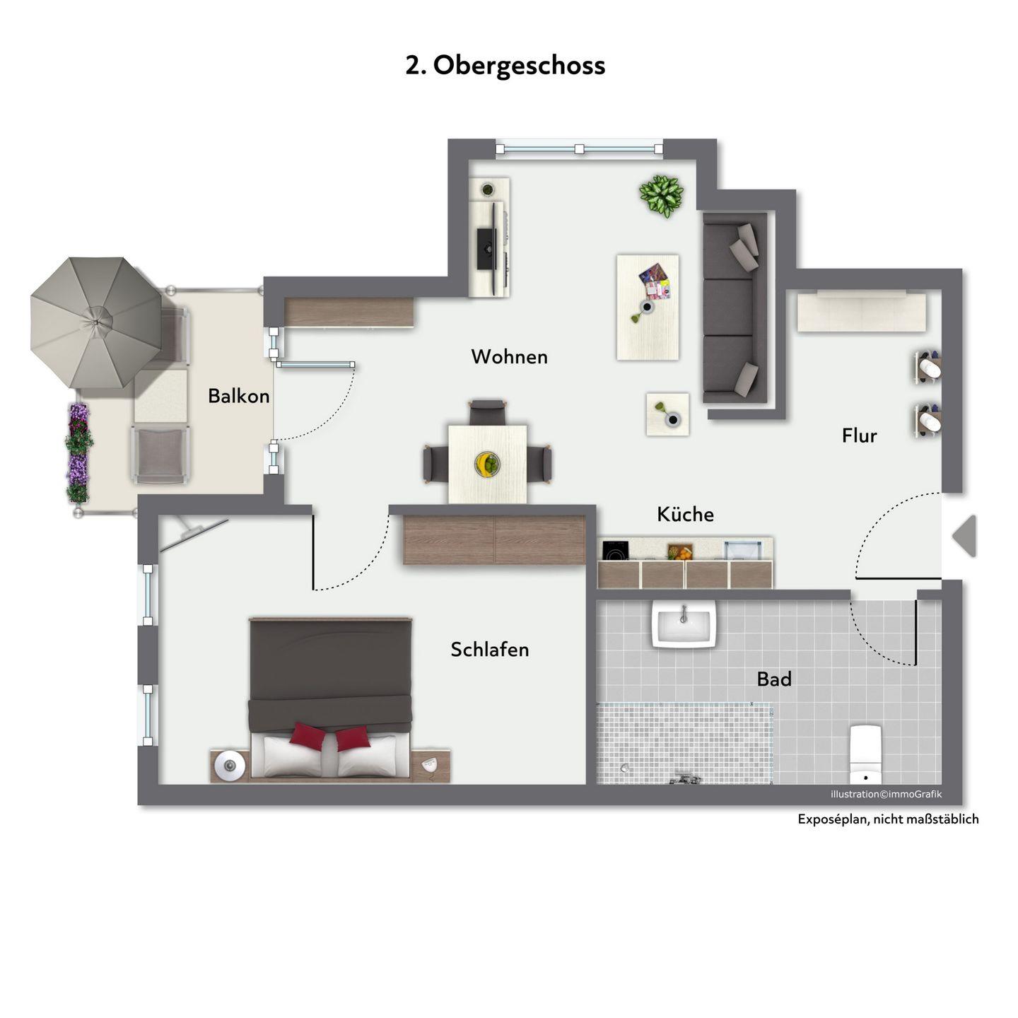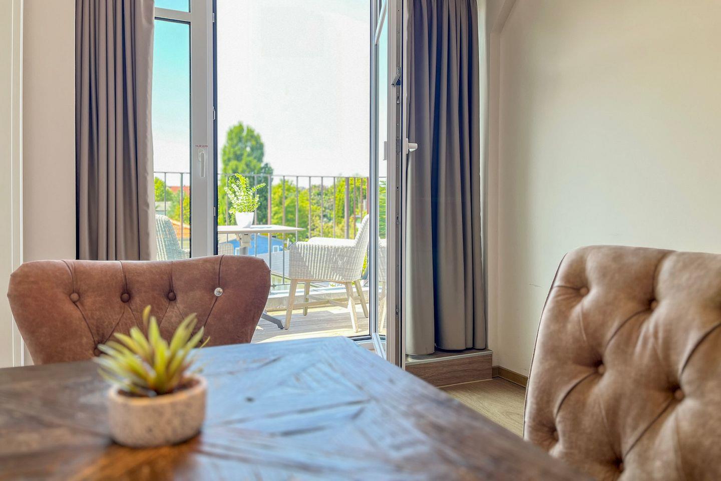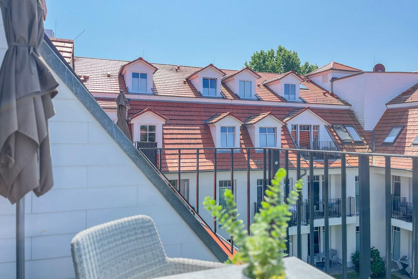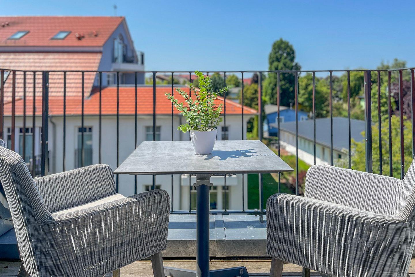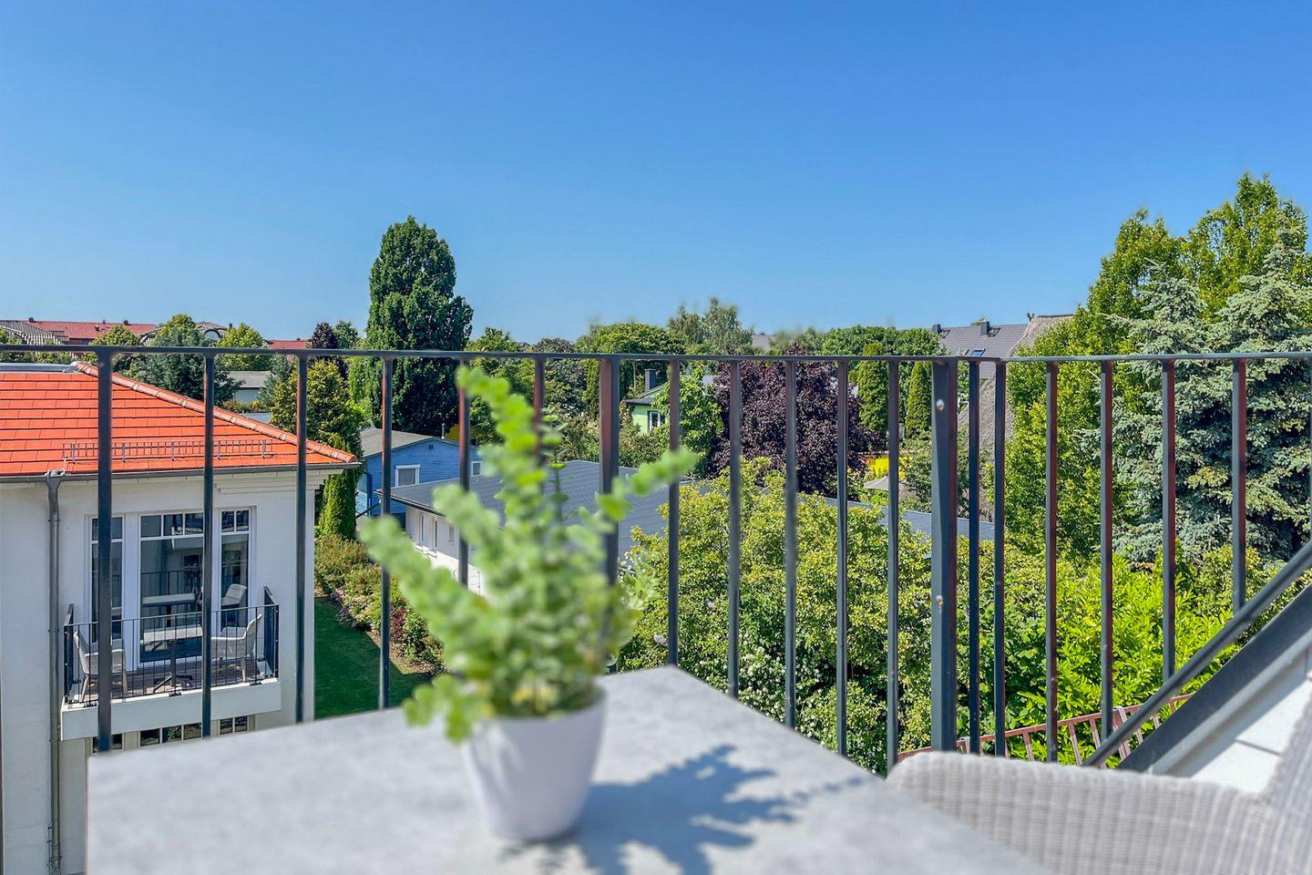 Ein Highlight dieser Wohnung ist der möblierte Balkon mit Gartenblick. Hier kannst Du entspannt frühstücken oder am Abend bei einem Glas Wein die frische Ostseeluft genießen.