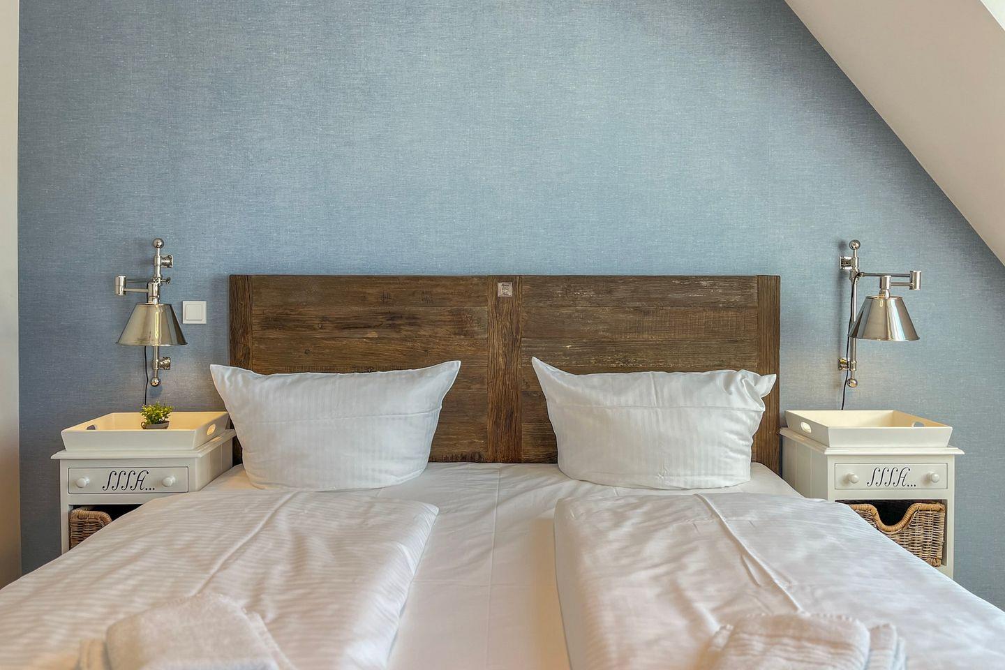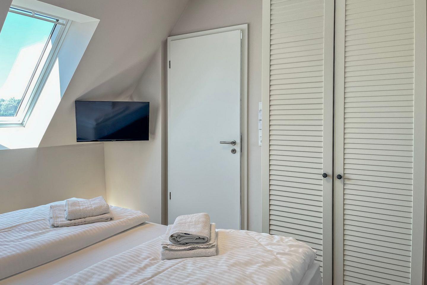 Im separaten Schlafzimmer findest Du ein komfortables Doppelbett (2x 90x200?cm), das für erholsame Nächte sorgt. Stauraum für Kleidung bietet ein geräumiger Schrank. Das Schlafsofa im Wohnzimmer ist ein weiterer Schlafplatz.
