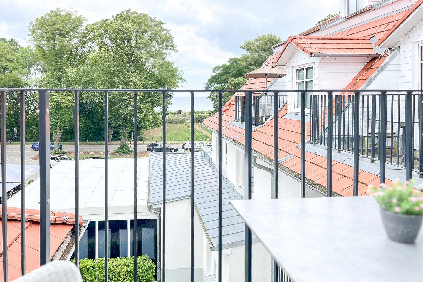 Ein besonderes Highlight dieser Wohnung ist der möblierte Balkon mit Meerblick – ideal für ein Frühstück an der frischen Luft oder ein Glas Wein am Abend.