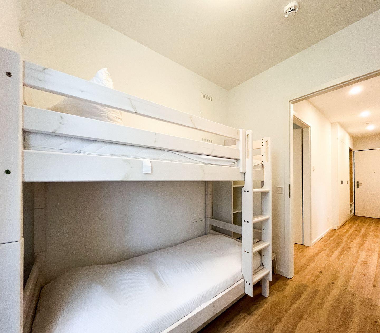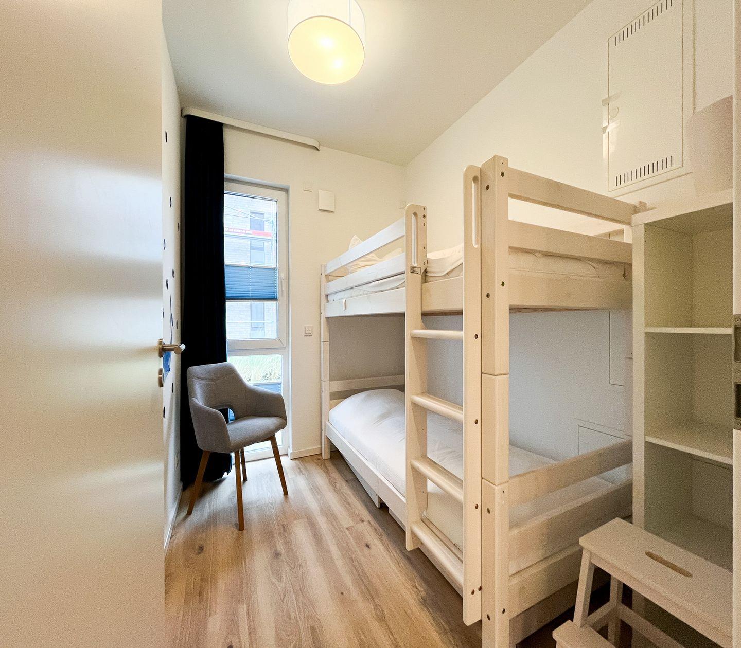 Das erste Schlafzimmer verfügt über ein Doppelbett (180x200 cm) und einen Kleiderschrank. Im zweiten Schlafzimmer erwartet Dich ein Etagenbett (2x 80x200cm). In einem Regal kannst Du zusätzliche Garderobe unterbringen. Beide Schlafzimmer können mit Vorhängen abgedunkelt werden.